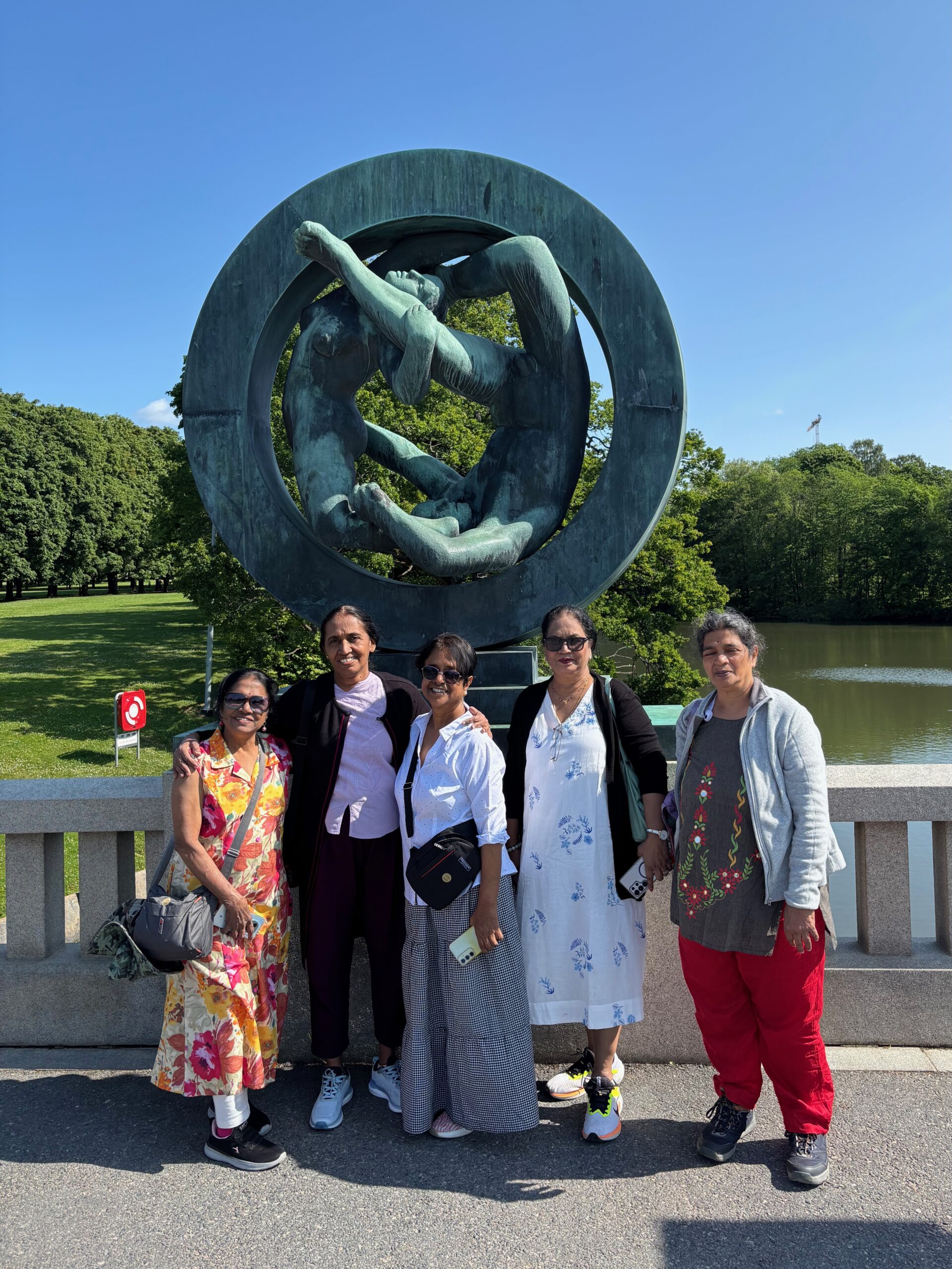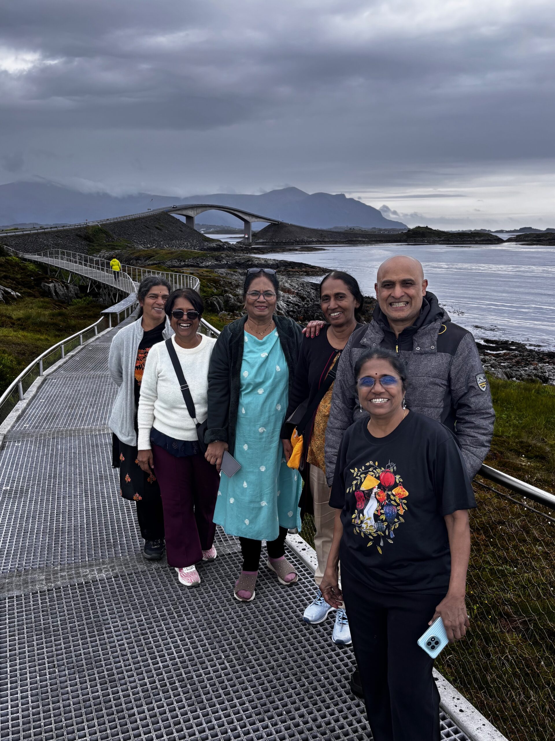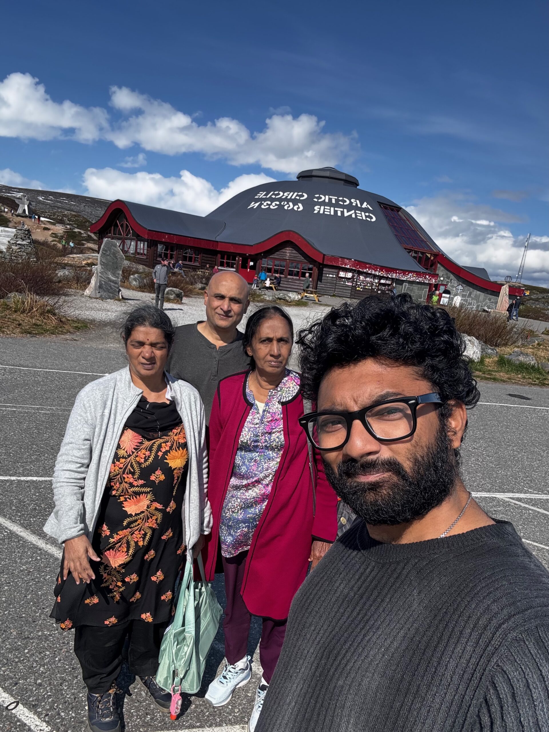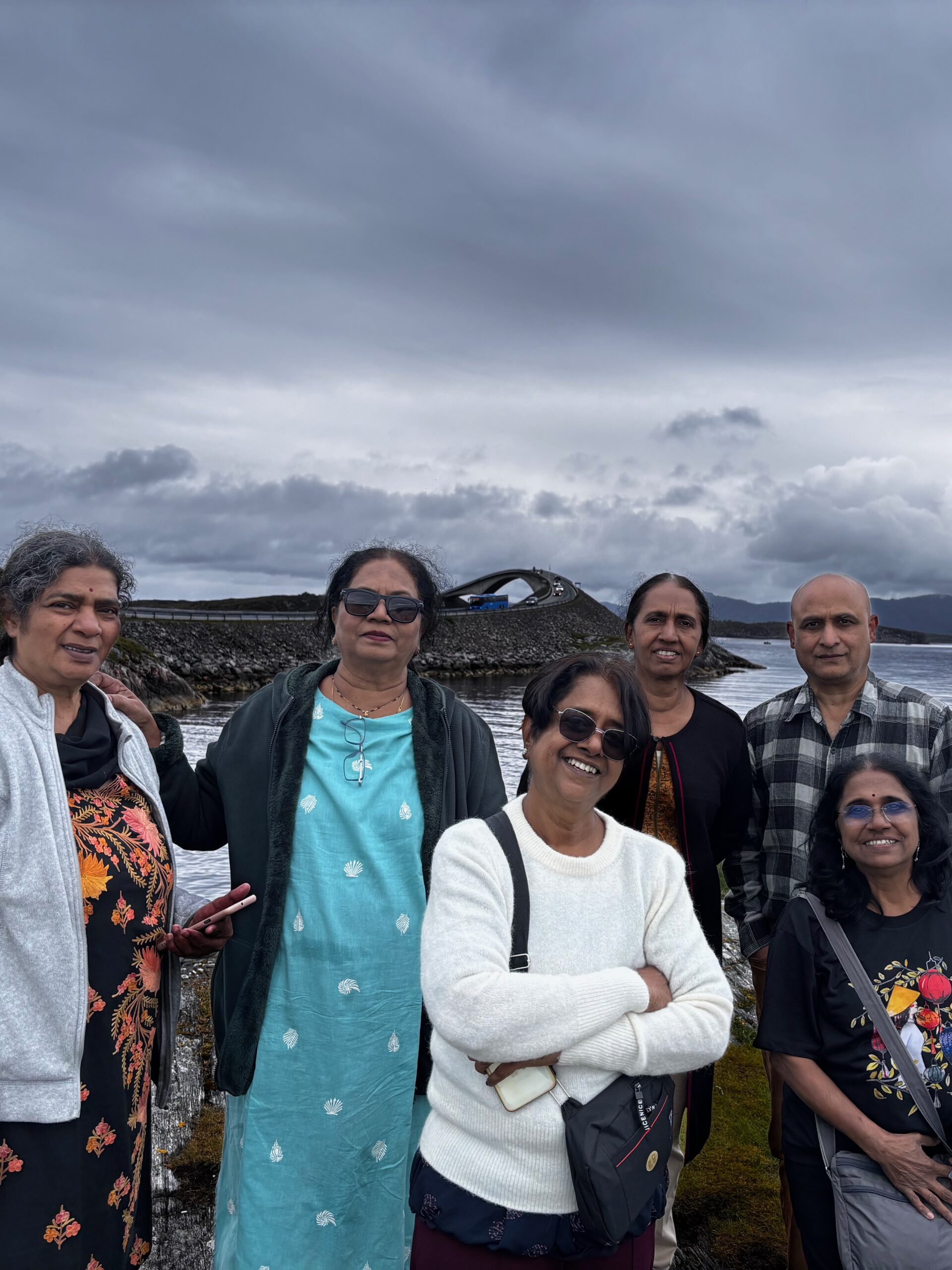 In Geiranger, we took a cruise through the UNESCO-listed fjord, passing legendary waterfalls like the Seven Sisters, as cliffs towered on either side. Then came the stretch we’d all been dreaming about: the Atlantic Ocean Road. A marvel of engineering and nature, its graceful bridges danced over the sea, delivering dramatic views and heart-pounding excitement. It was truly a highlight—a bucket-list dream fulfilled. We paused in Trondheim, a historic and youthful city, before continuing our journey northward. Crossing into the Arctic Circle, we stopped at the Arctic Circle Centre to take photos, gather souvenirs, and mark the surreal moment where the sun never truly sets.