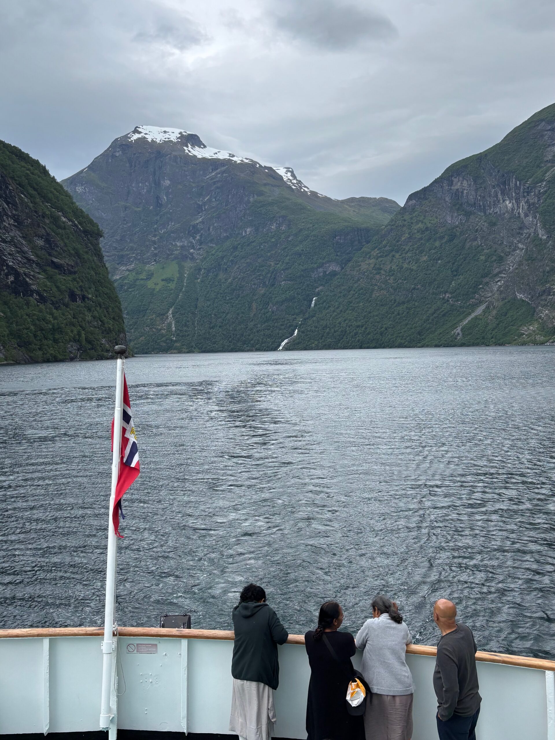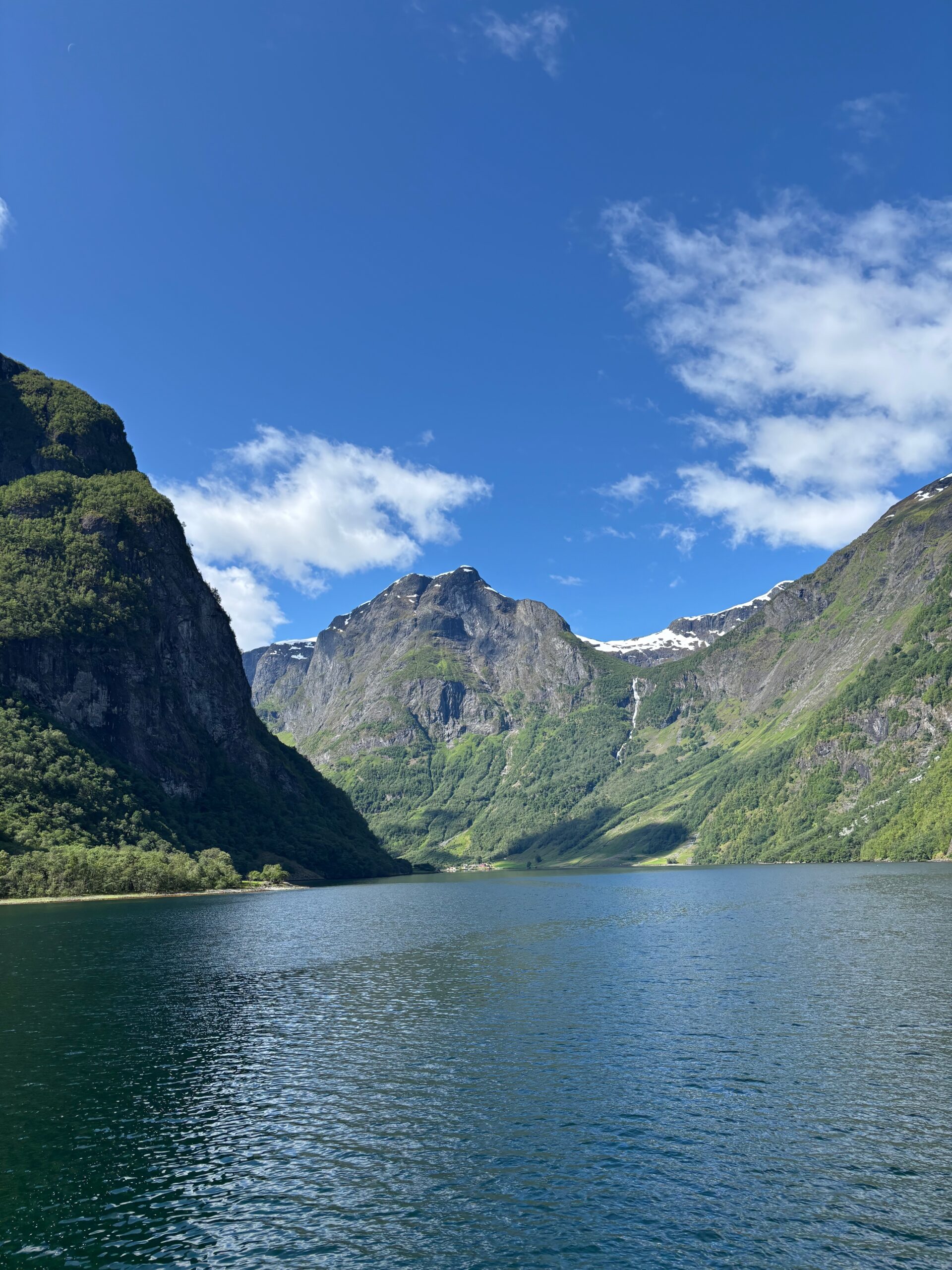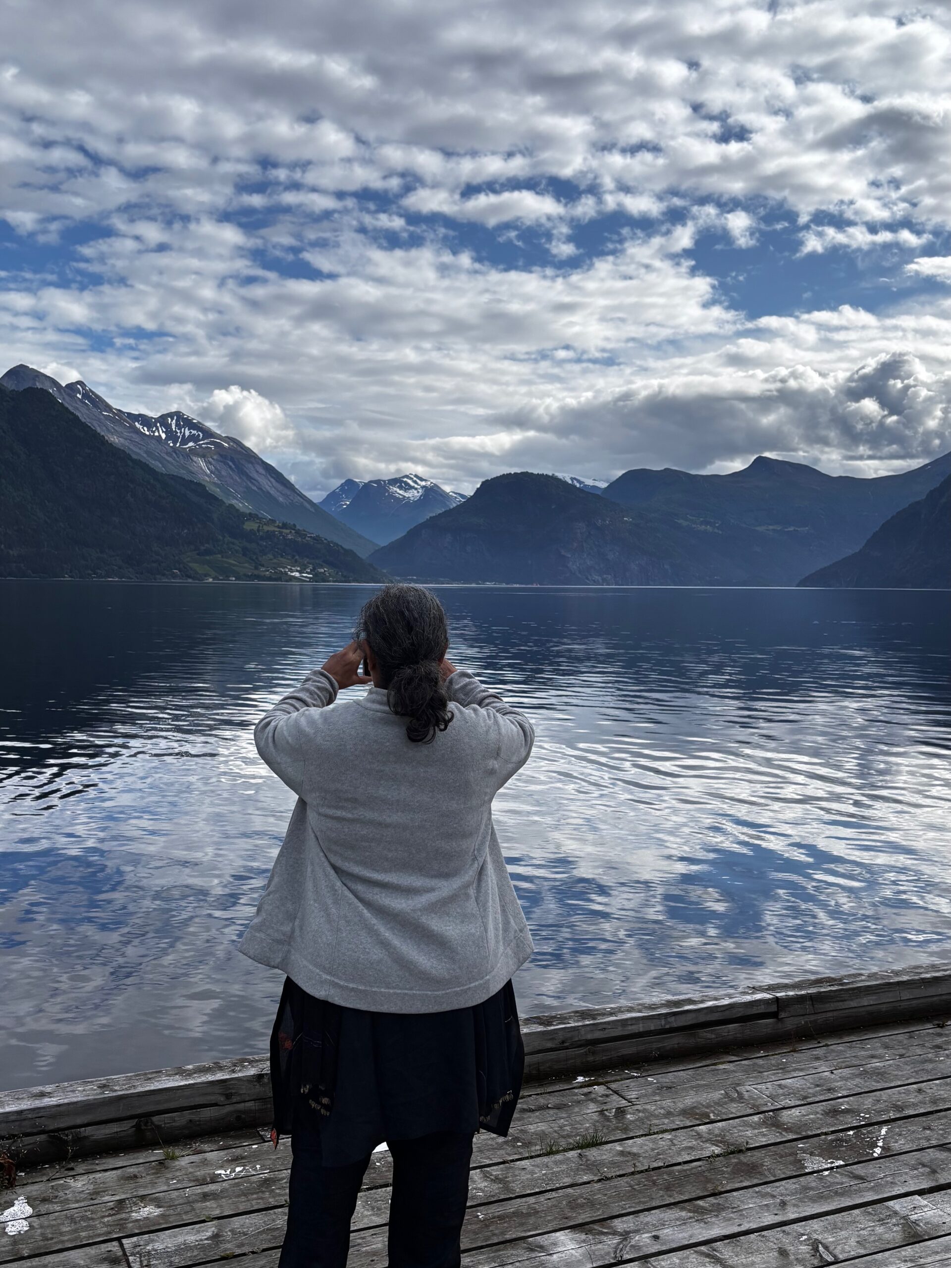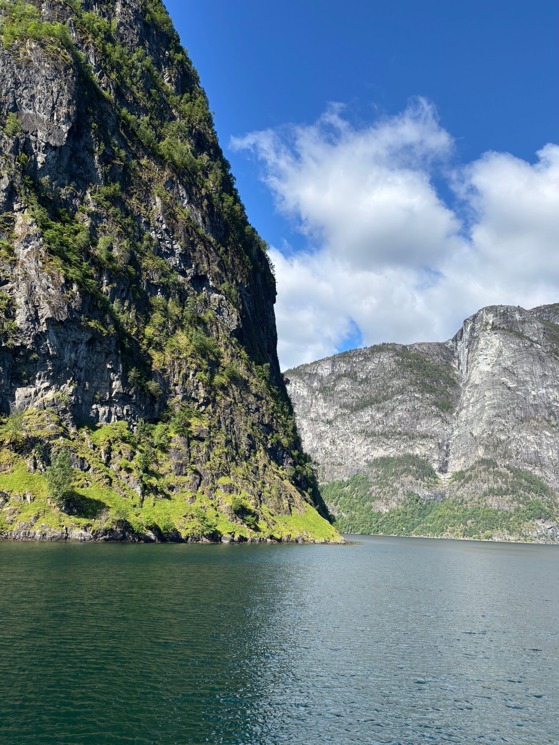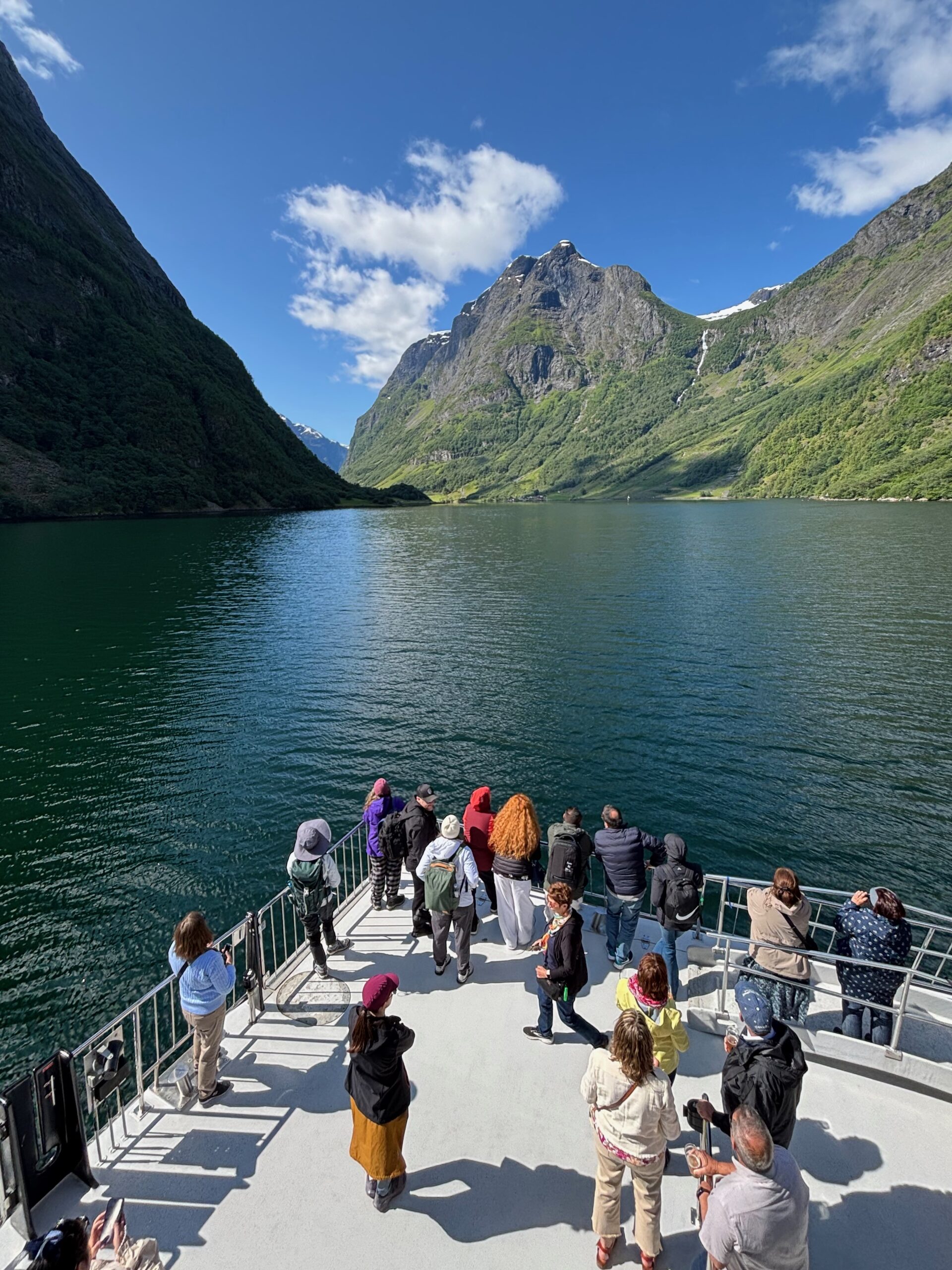Next, we drove west to Bergen, the city of seven mountains, where colorful harbors and sea-salt air framed our days. From there, we moved to the tranquil valley of Flåm, nestled between steep cliffs and cascading waterfalls. Our countryside stay felt like a dream. A cruise through the Nærøyfjord, one of Norway’s most dramatic and narrow fjords, left us floating through a landscape carved by time. At the Stegastein Viewpoint, we stood high above the fjord, suspended in silence, surrounded by clouds and space.