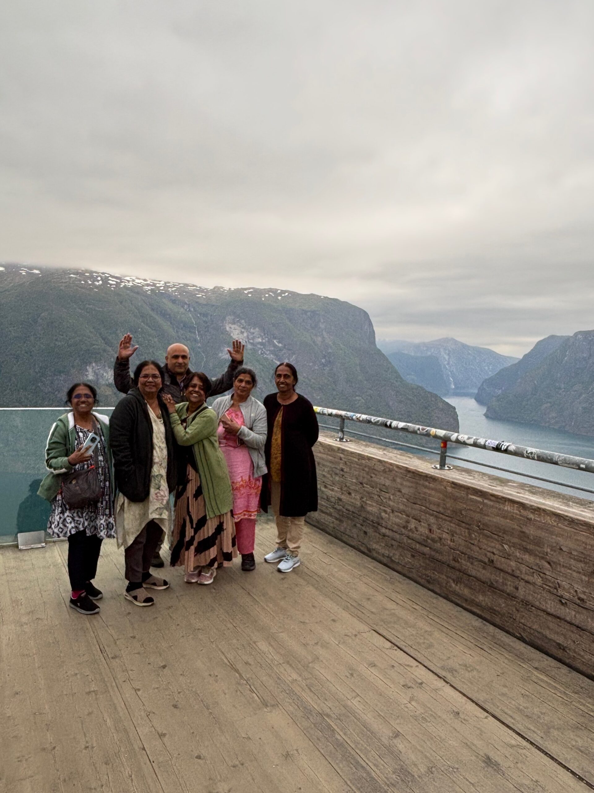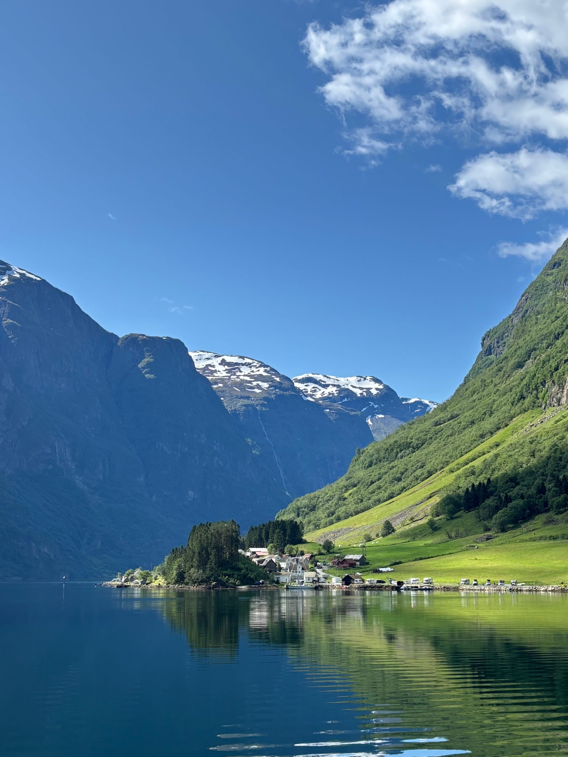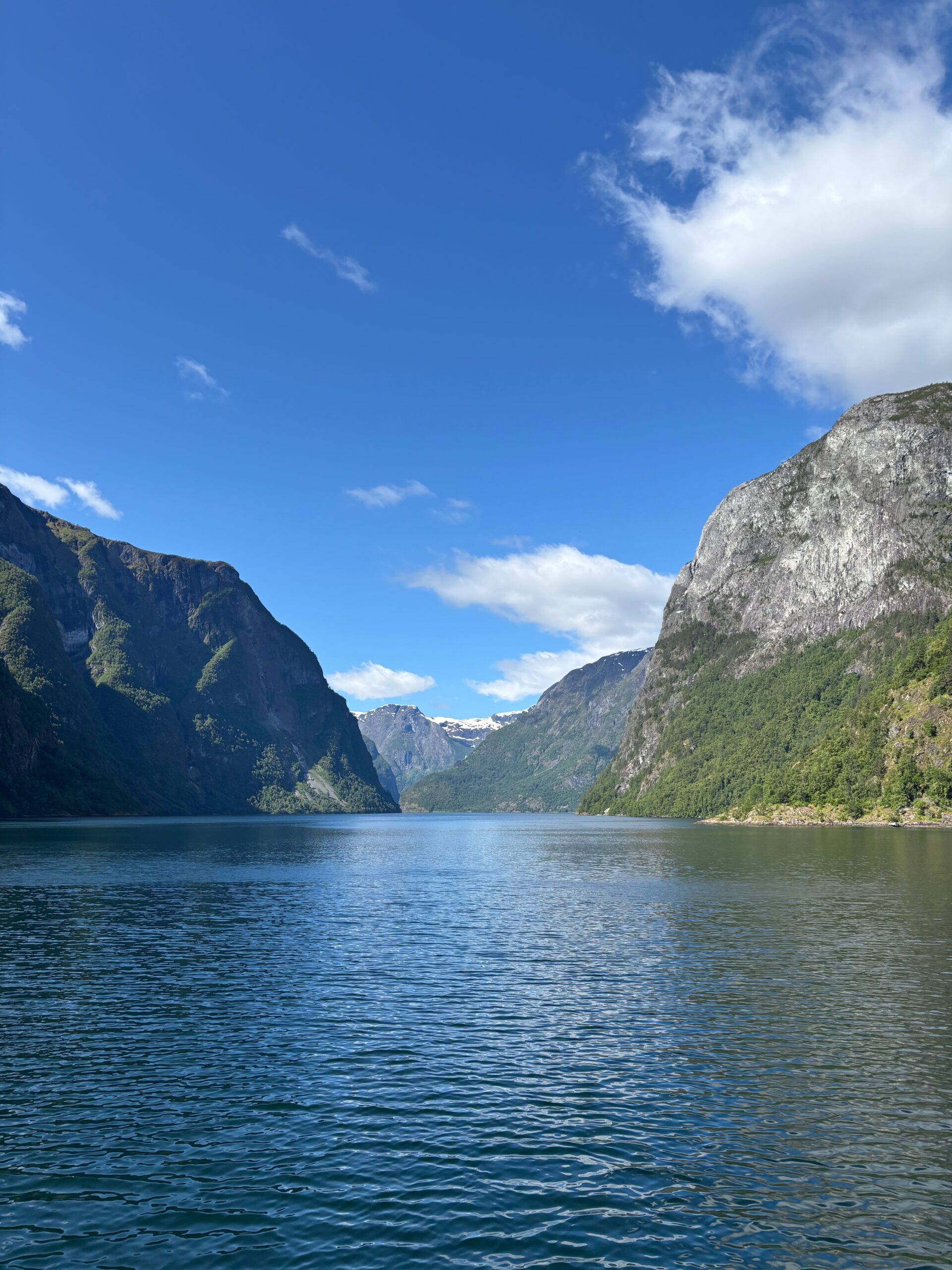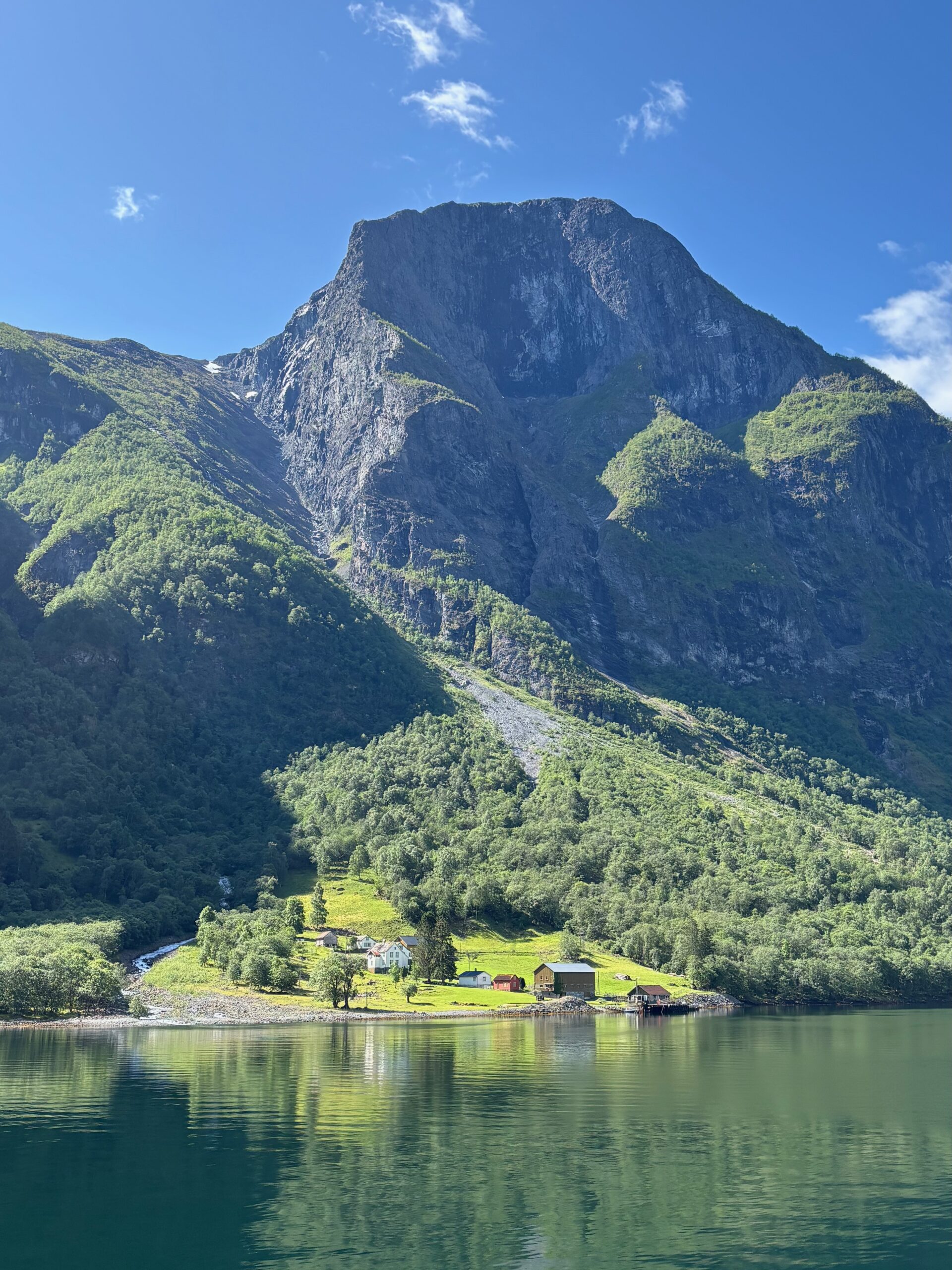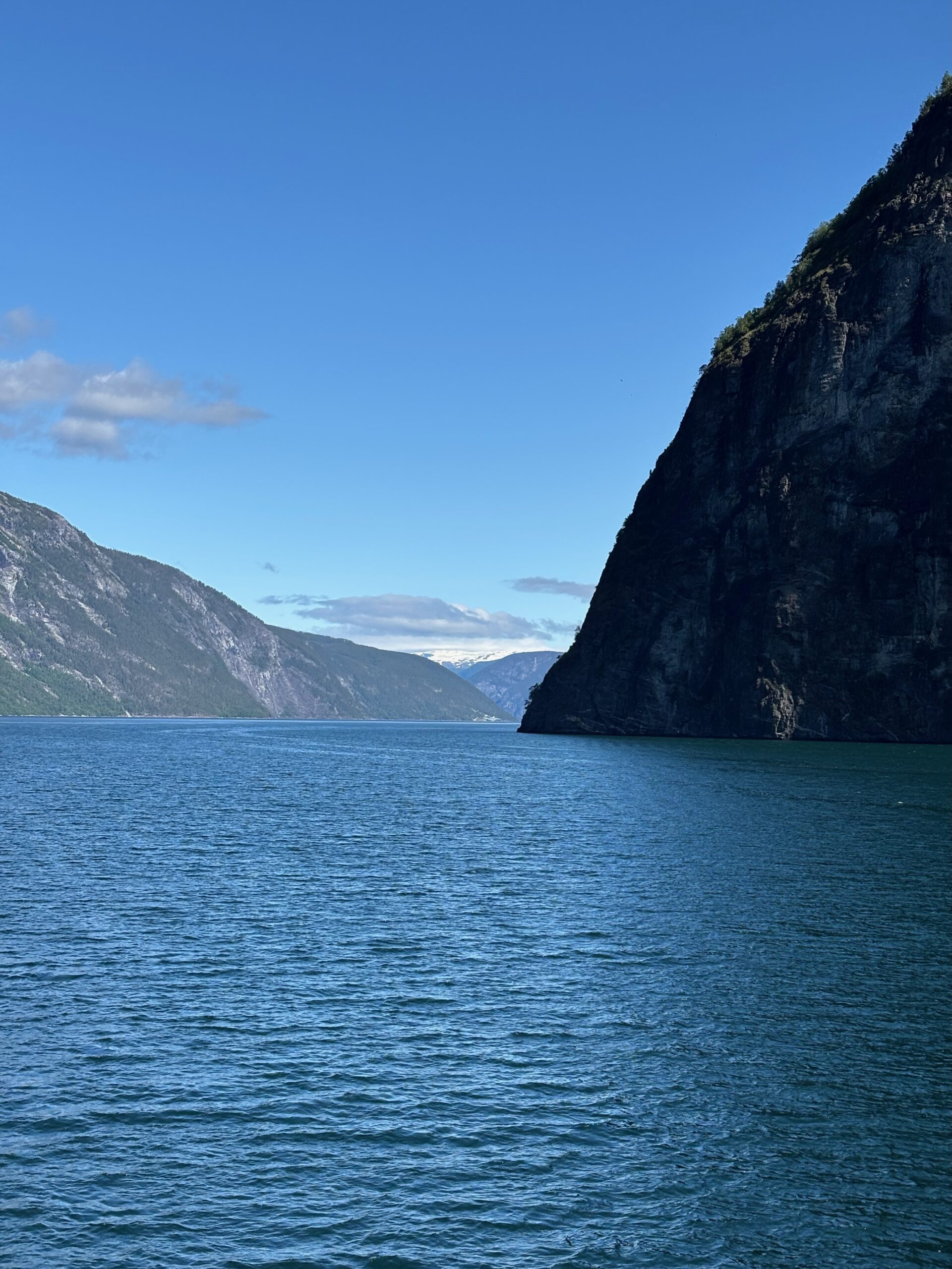 Next, we drove west to Bergen, the city of seven mountains, where colorful harbors and sea-salt air framed our days. From there, we moved to the tranquil valley of Flåm, nestled between steep cliffs and cascading waterfalls. Our countryside stay felt like a dream. A cruise through the Nærøyfjord, one of Norway’s most dramatic and narrow fjords, left us floating through a landscape carved by time. At the Stegastein Viewpoint, we stood high above the fjord, suspended in silence, surrounded by clouds and space.