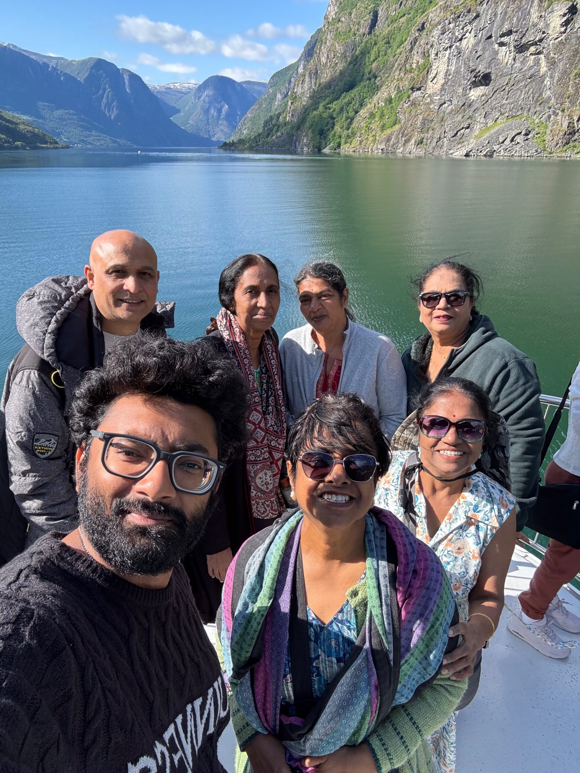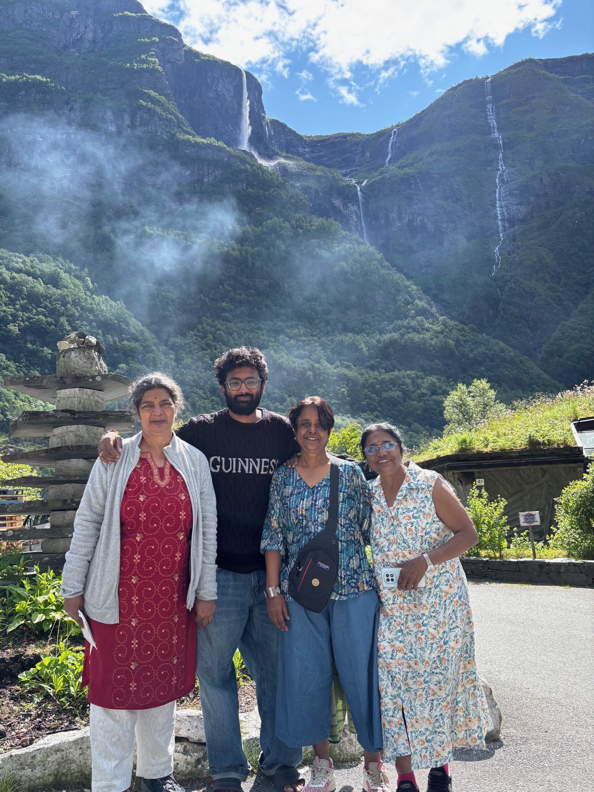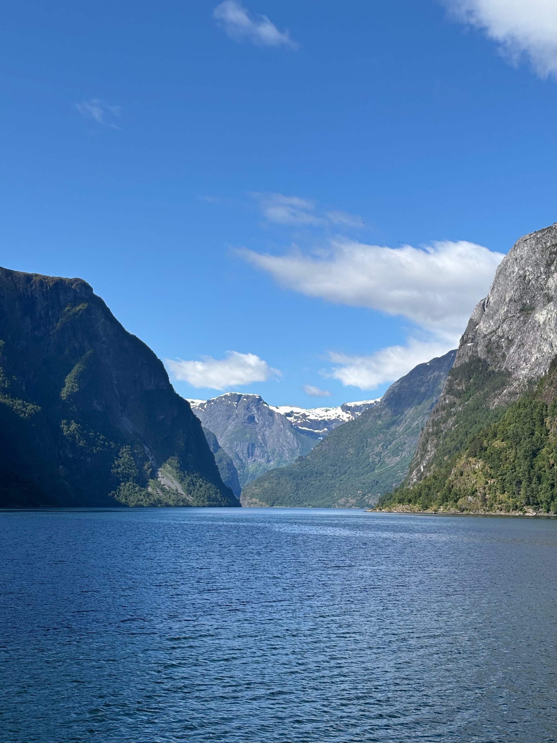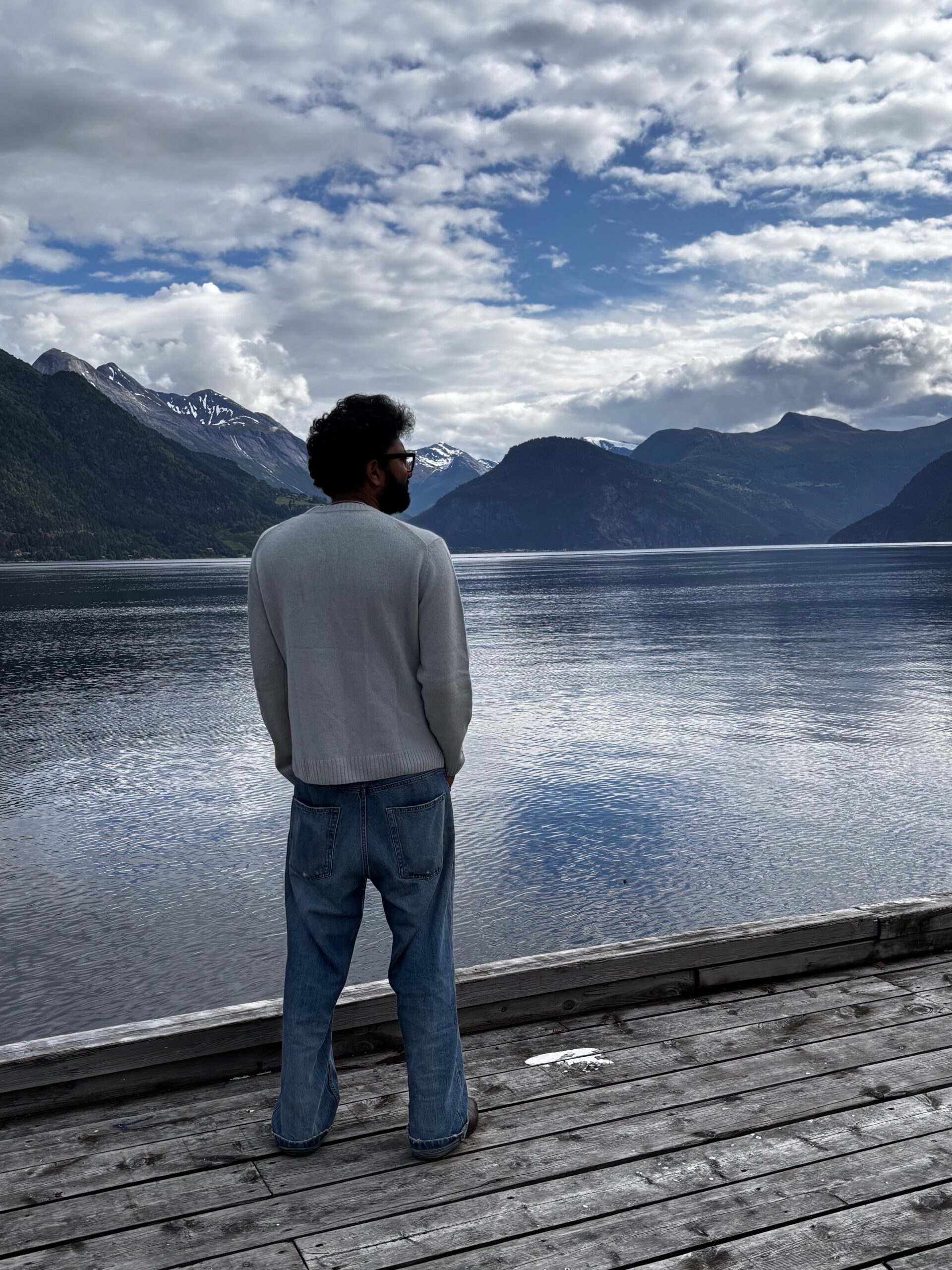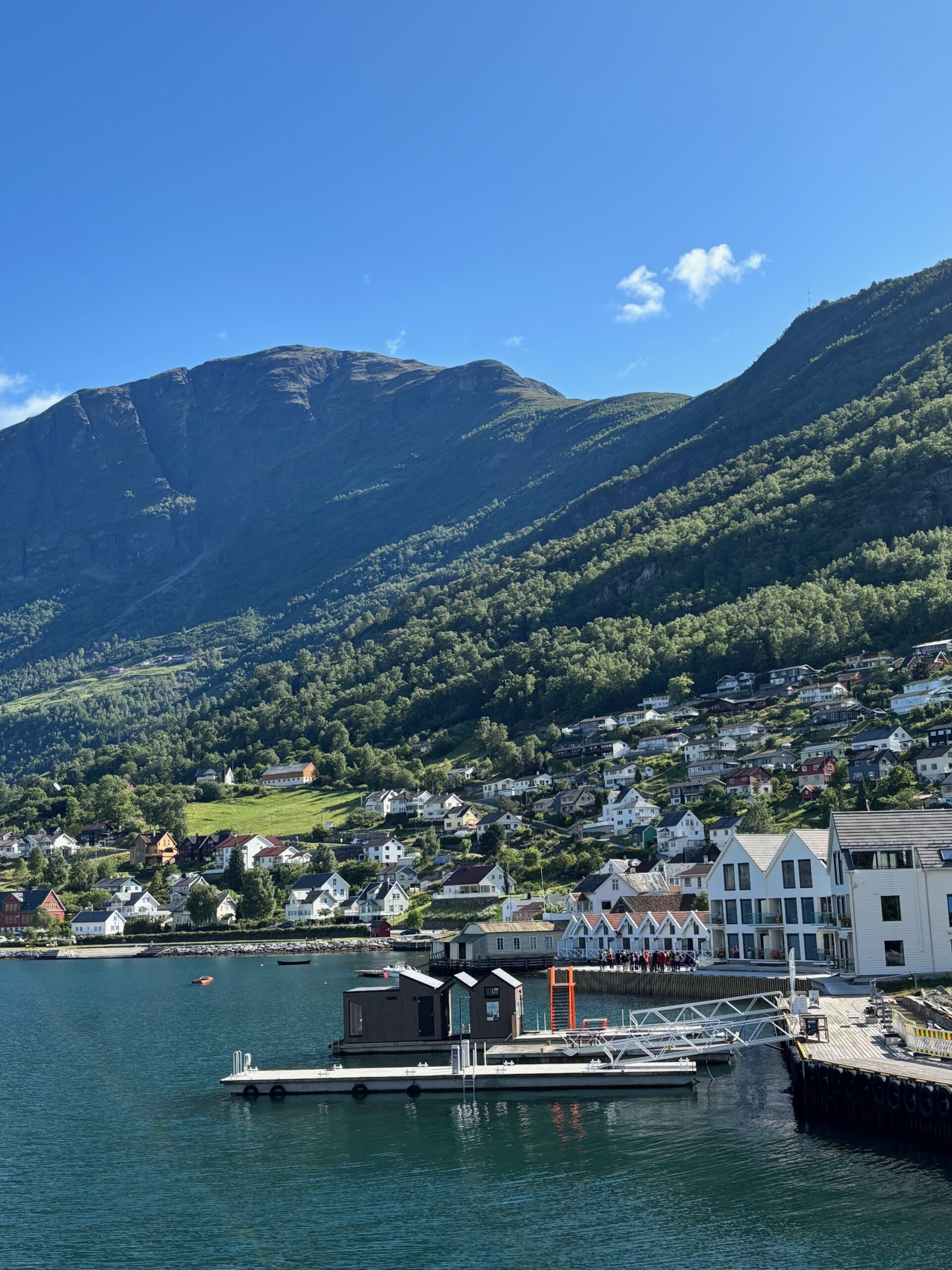 Next, we drove west to Bergen, the city of seven mountains, where colorful harbors and sea-salt air framed our days. From there, we moved to the tranquil valley of Flåm, nestled between steep cliffs and cascading waterfalls. Our countryside stay felt like a dream. A cruise through the Nærøyfjord, one of Norway’s most dramatic and narrow fjords, left us floating through a landscape carved by time. At the Stegastein Viewpoint, we stood high above the fjord, suspended in silence, surrounded by clouds and space.