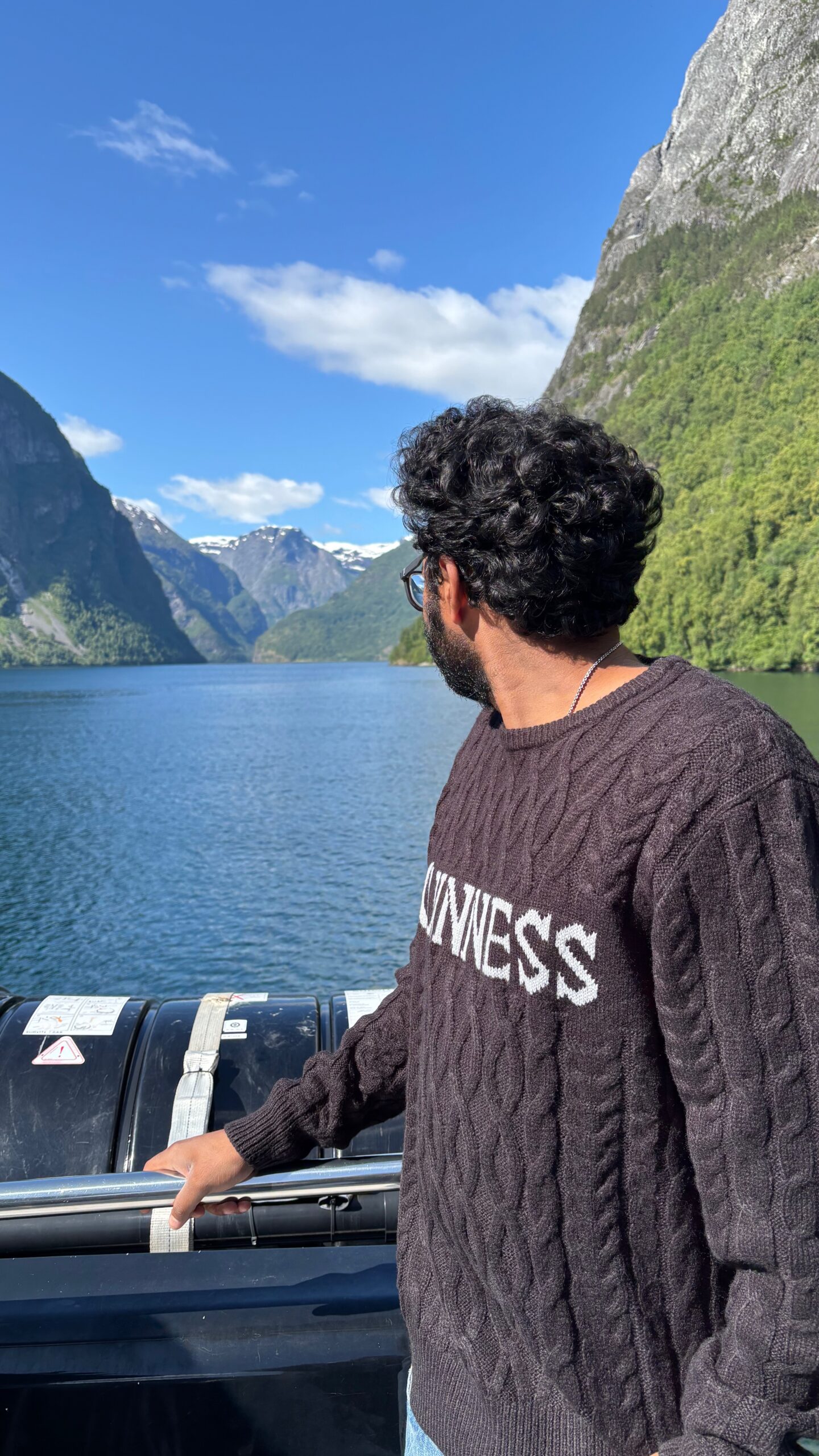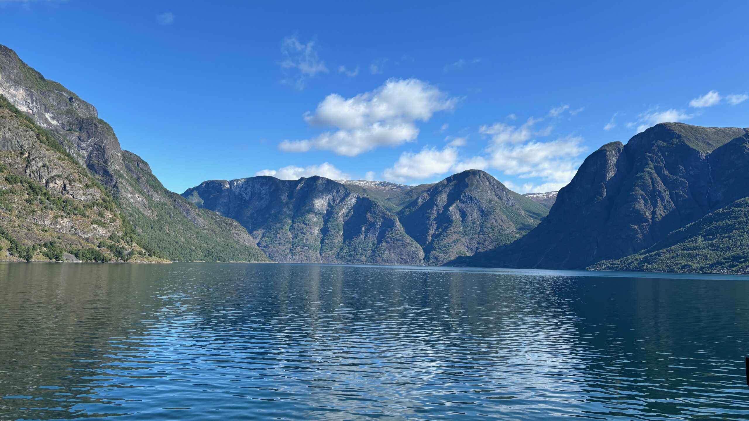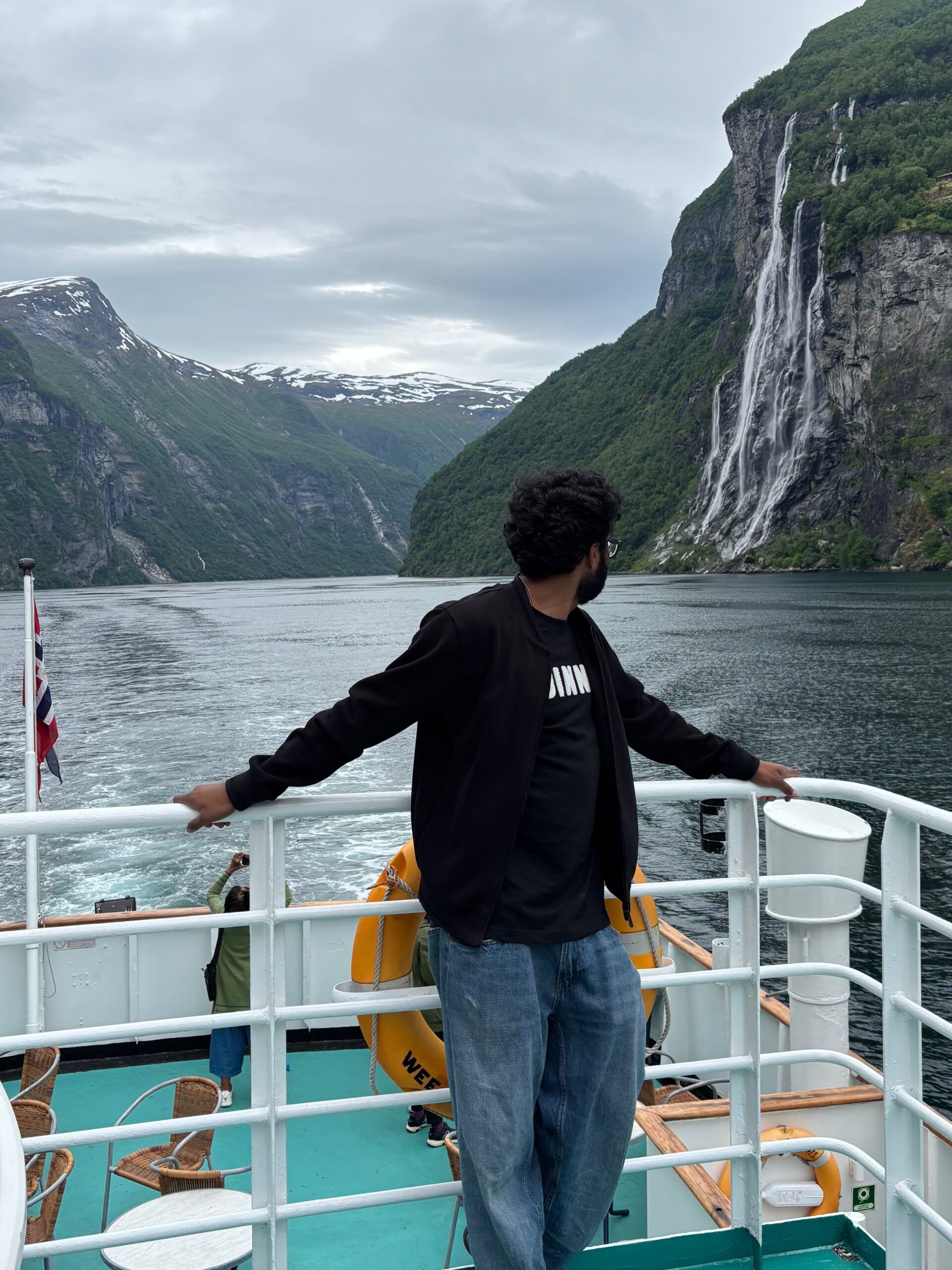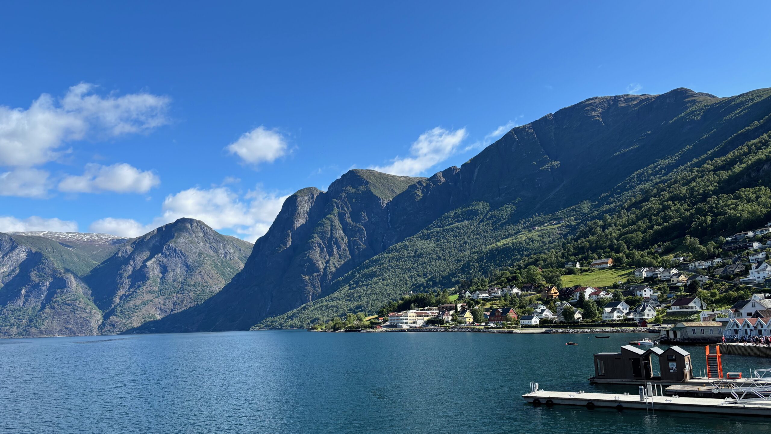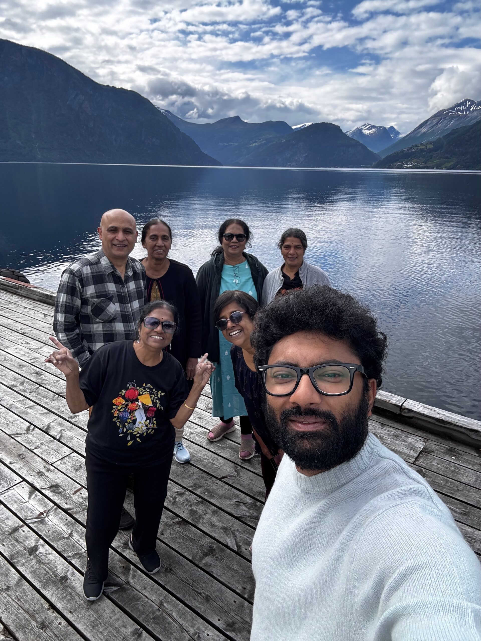 Next, we drove west to Bergen, the city of seven mountains, where colorful harbors and sea-salt air framed our days. From there, we moved to the tranquil valley of Flåm, nestled between steep cliffs and cascading waterfalls. Our countryside stay felt like a dream. A cruise through the Nærøyfjord, one of Norway’s most dramatic and narrow fjords, left us floating through a landscape carved by time. At the Stegastein Viewpoint, we stood high above the fjord, suspended in silence, surrounded by clouds and space.