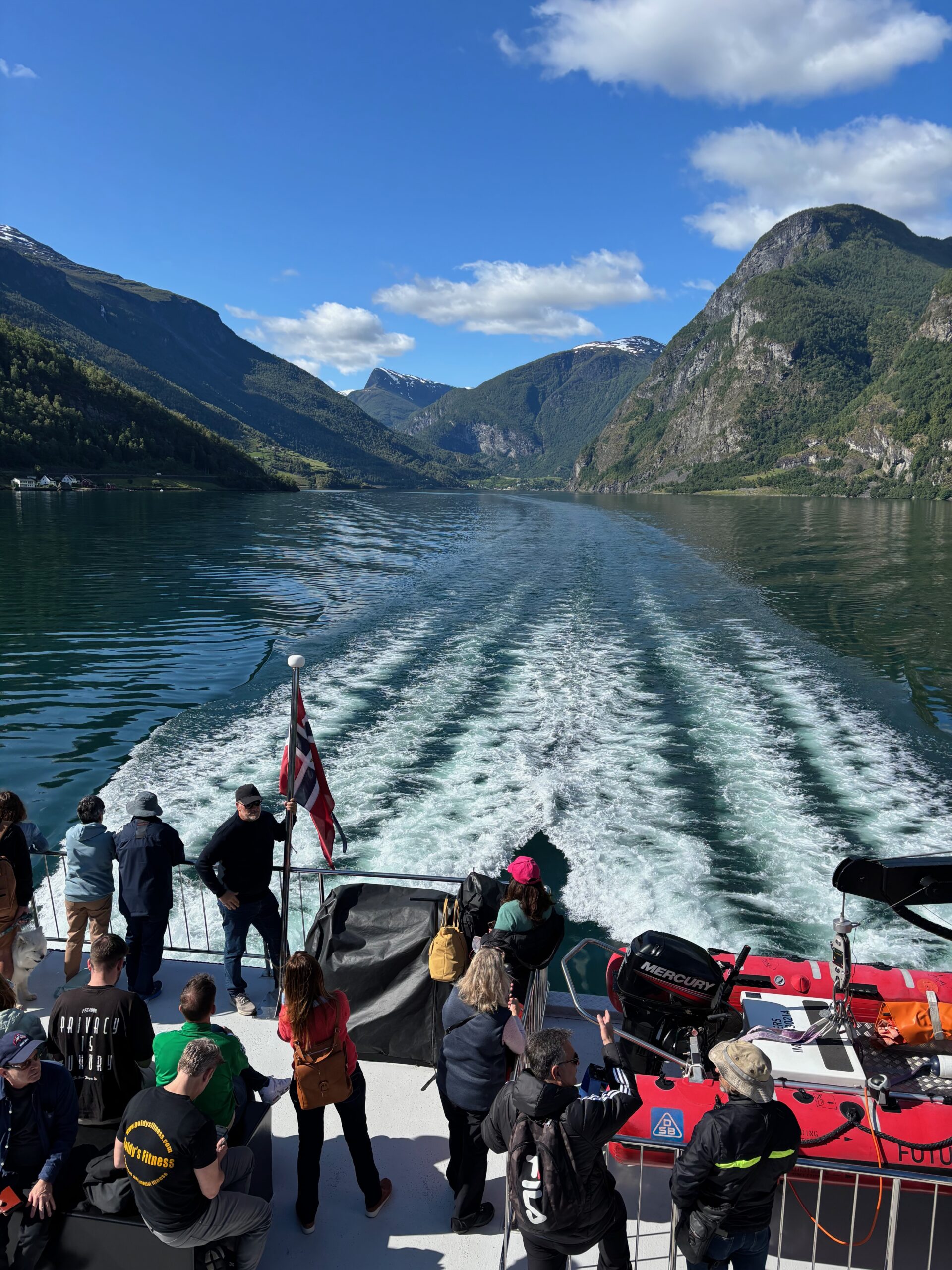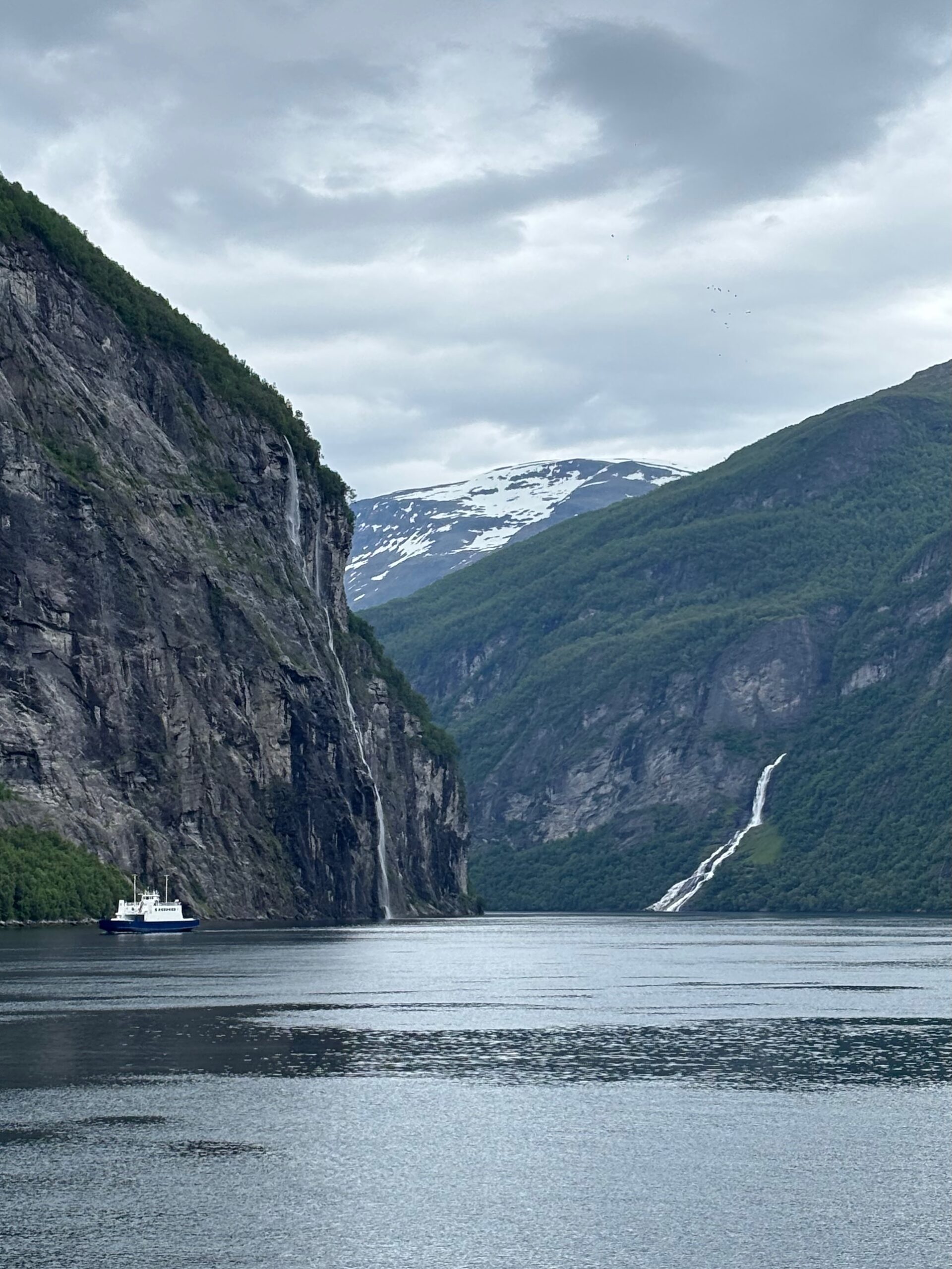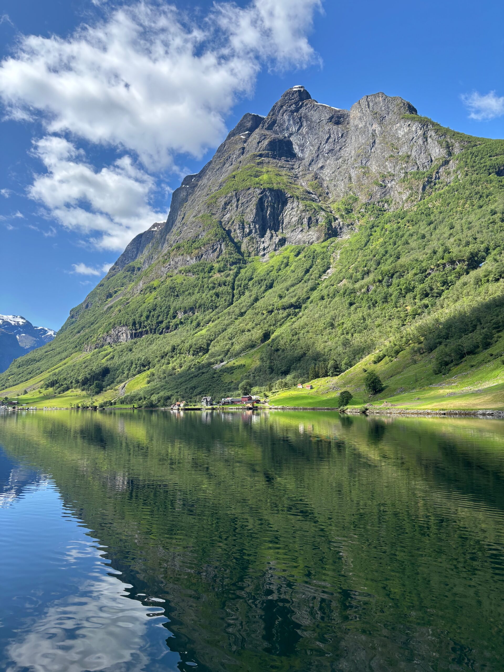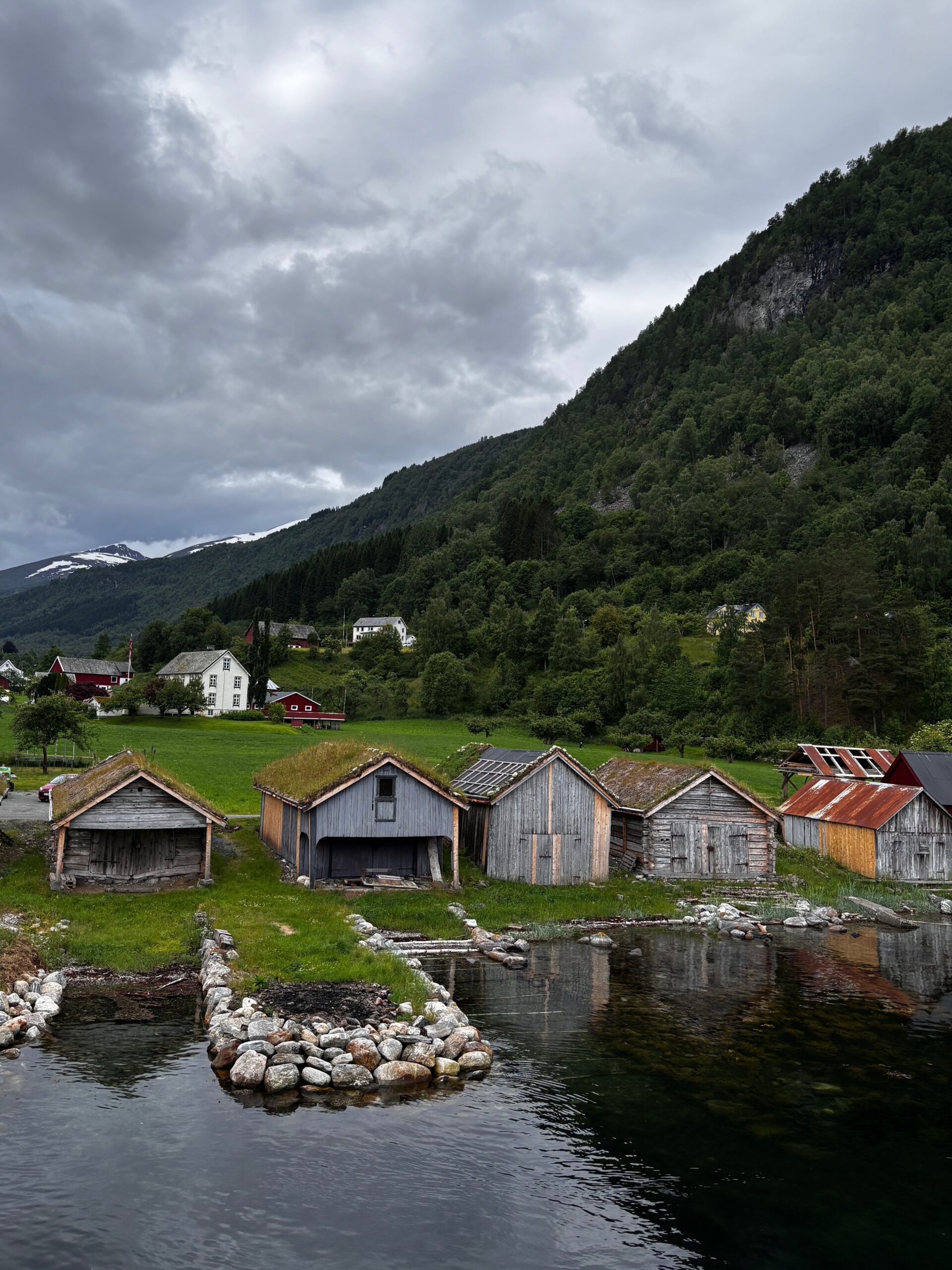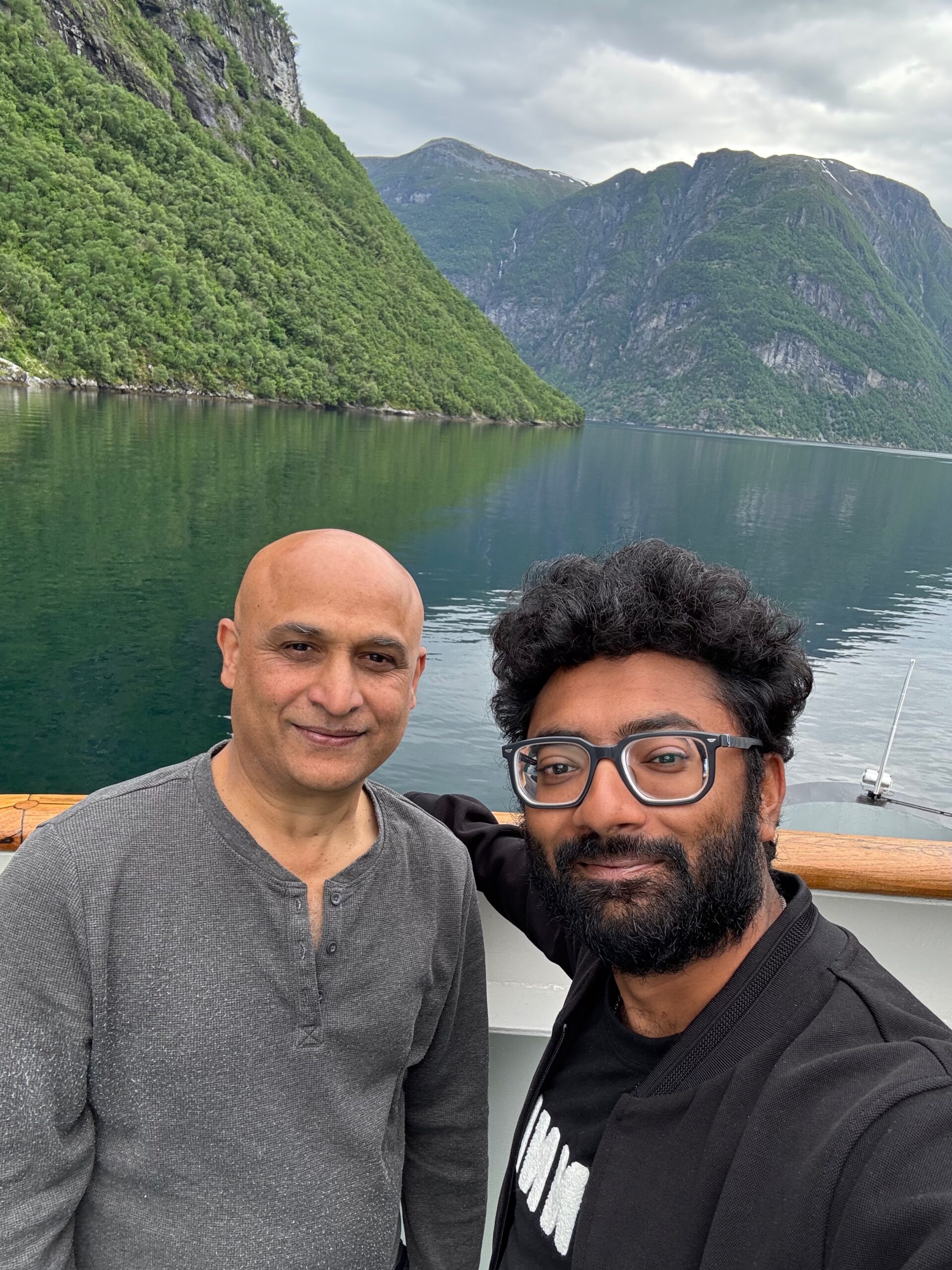 Next, we drove west to Bergen, the city of seven mountains, where colorful harbors and sea-salt air framed our days. From there, we moved to the tranquil valley of Flåm, nestled between steep cliffs and cascading waterfalls. Our countryside stay felt like a dream. A cruise through the Nærøyfjord, one of Norway’s most dramatic and narrow fjords, left us floating through a landscape carved by time. At the Stegastein Viewpoint, we stood high above the fjord, suspended in silence, surrounded by clouds and space.