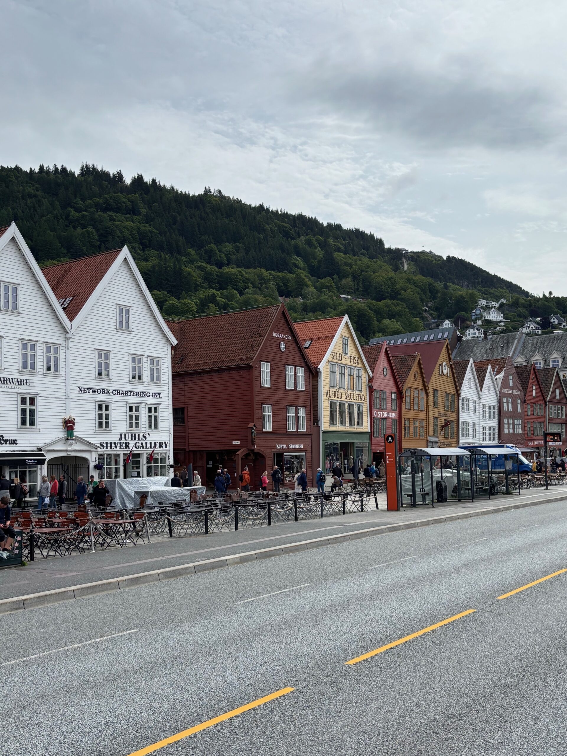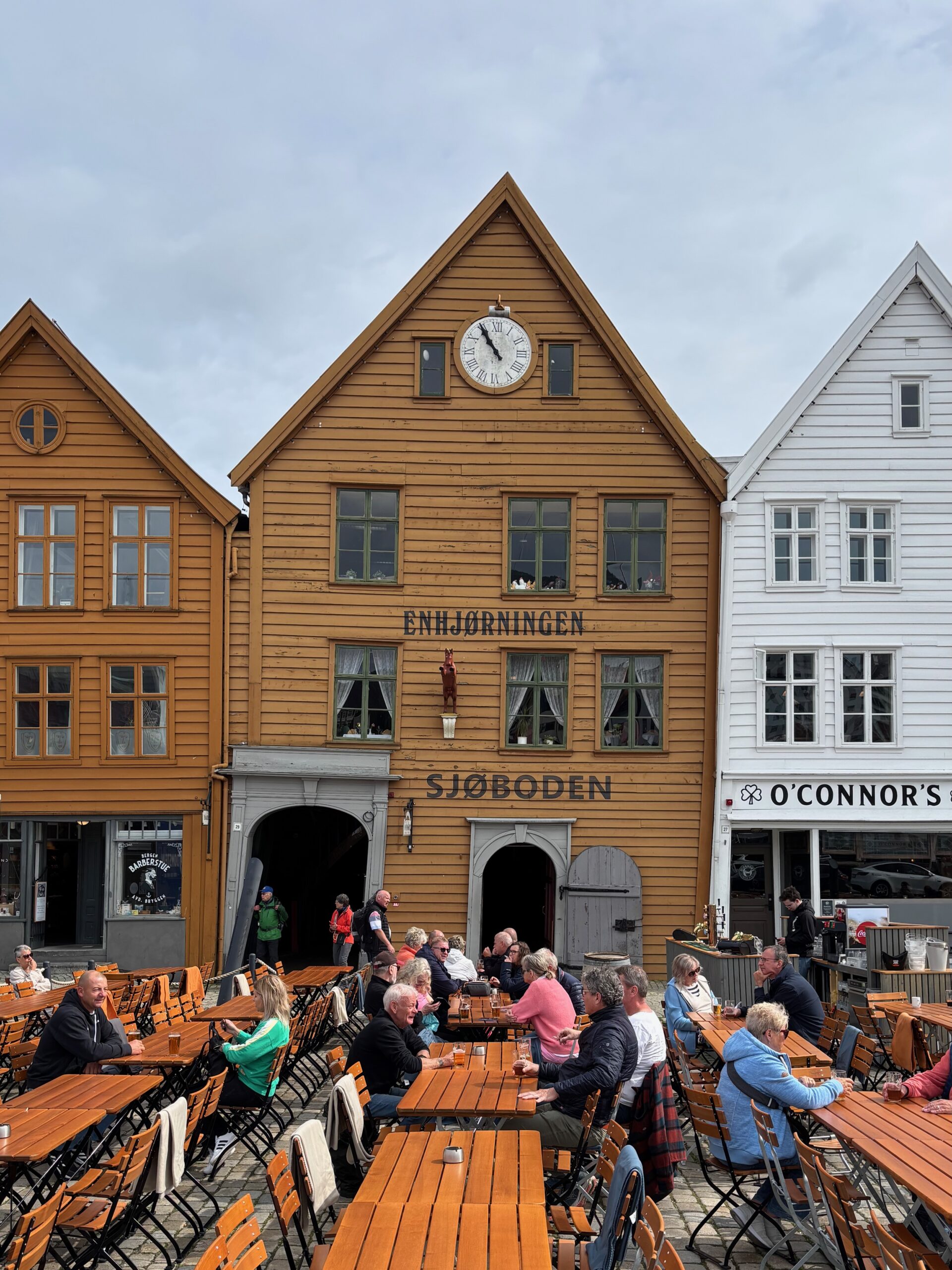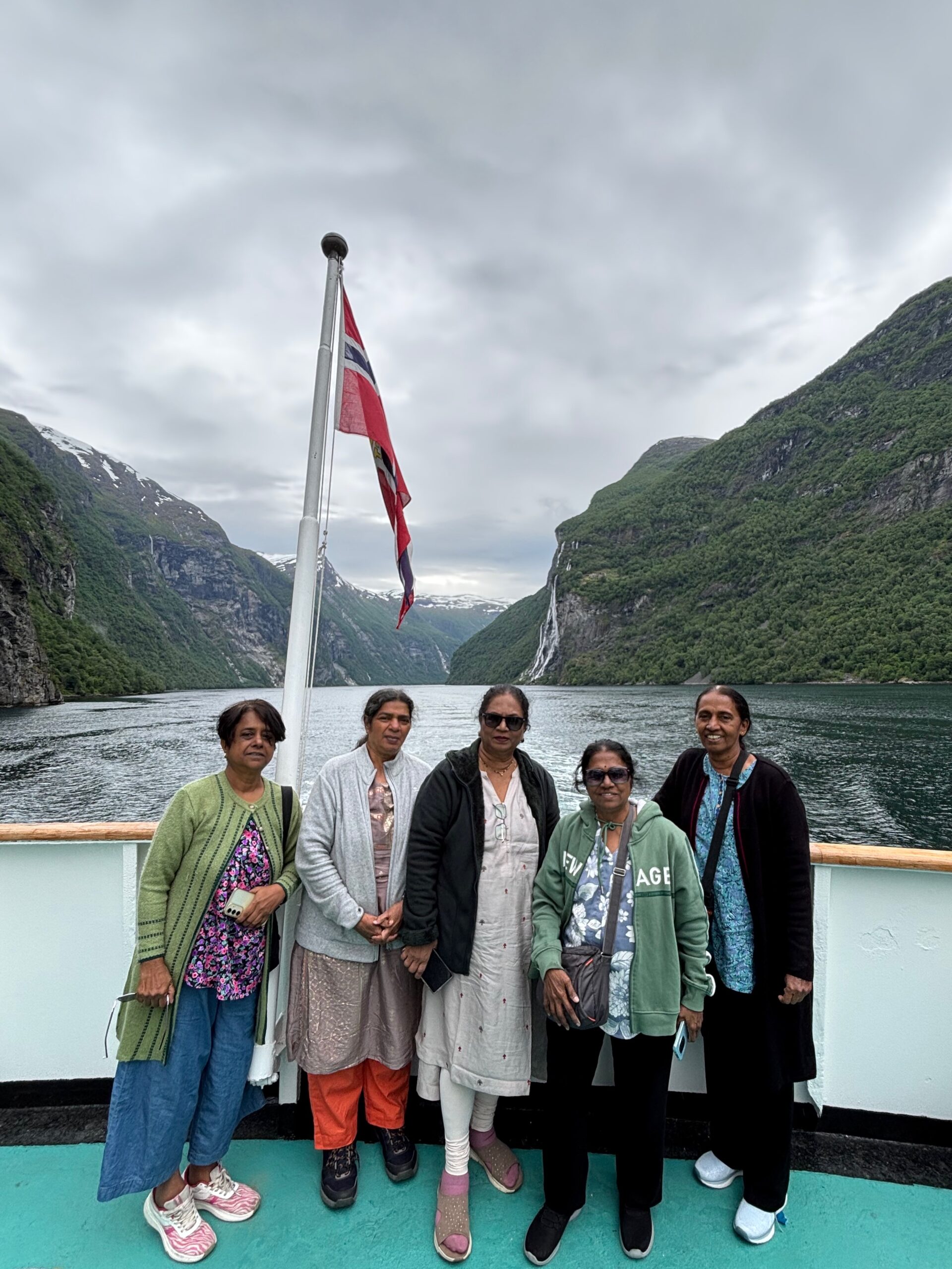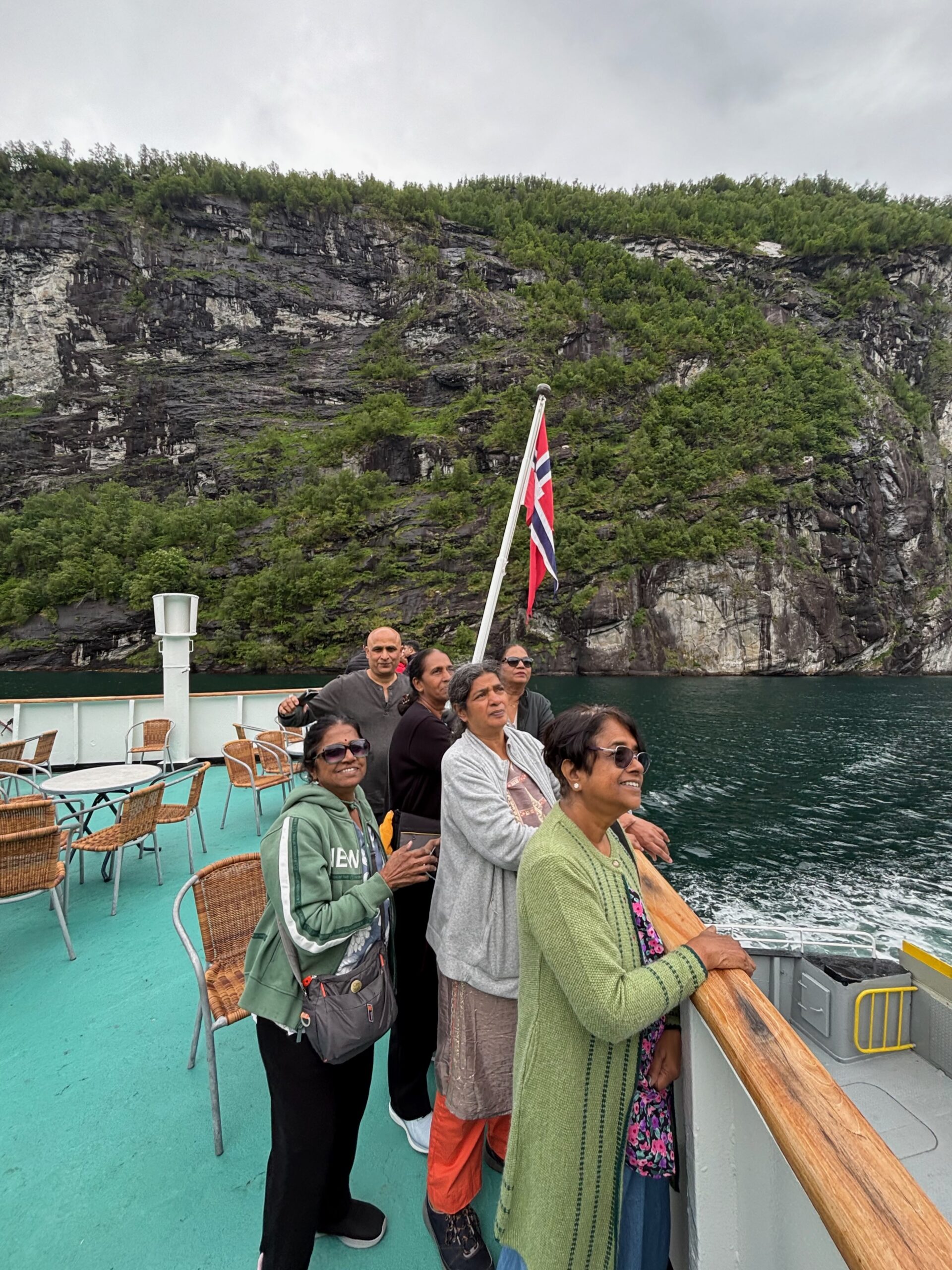 Next, we drove west to Bergen, the city of seven mountains, where colorful harbors and sea-salt air framed our days. From there, we moved to the tranquil valley of Flåm, nestled between steep cliffs and cascading waterfalls. Our countryside stay felt like a dream. A cruise through the Nærøyfjord, one of Norway’s most dramatic and narrow fjords, left us floating through a landscape carved by time. At the Stegastein Viewpoint, we stood high above the fjord, suspended in silence, surrounded by clouds and space.