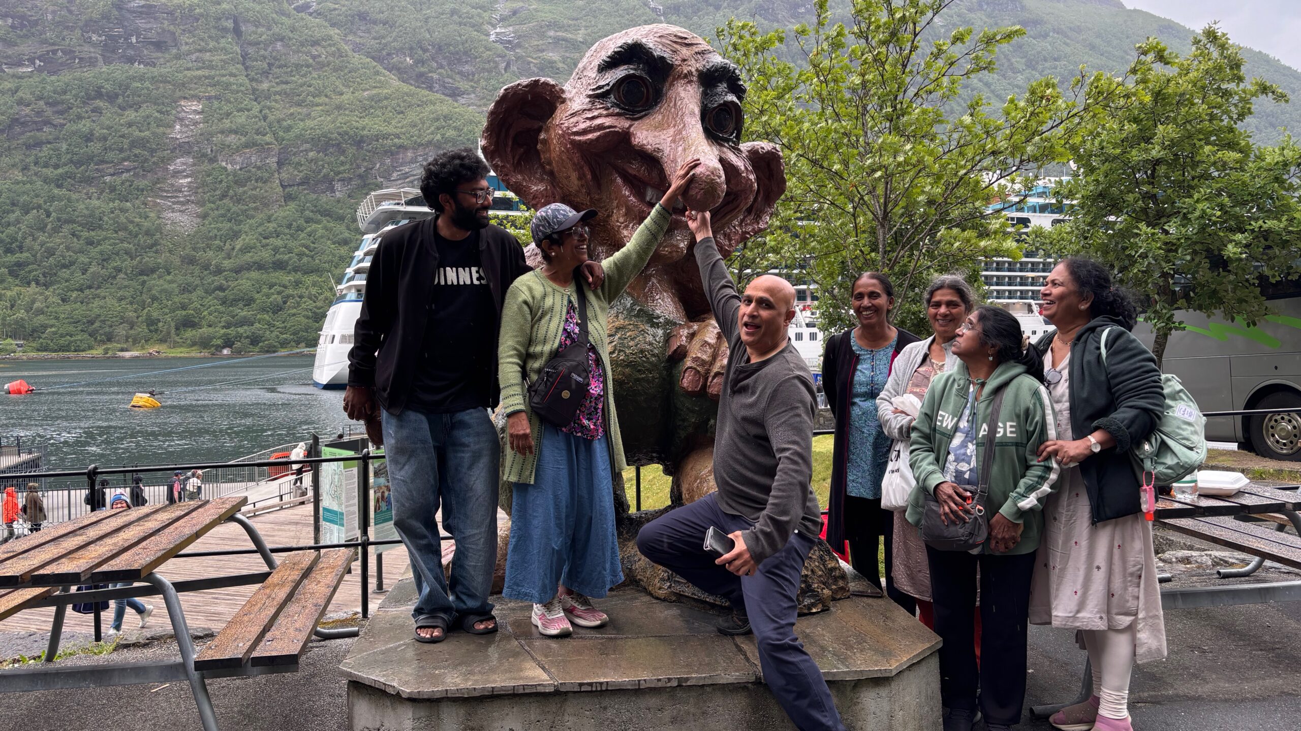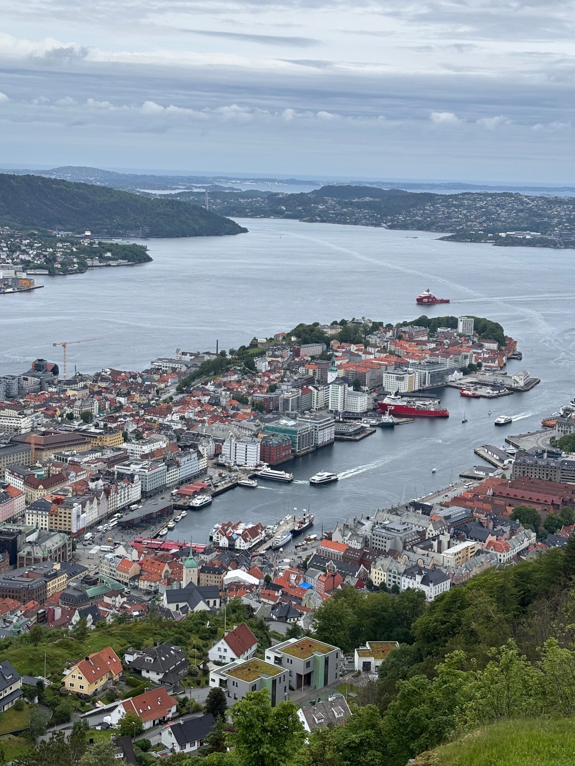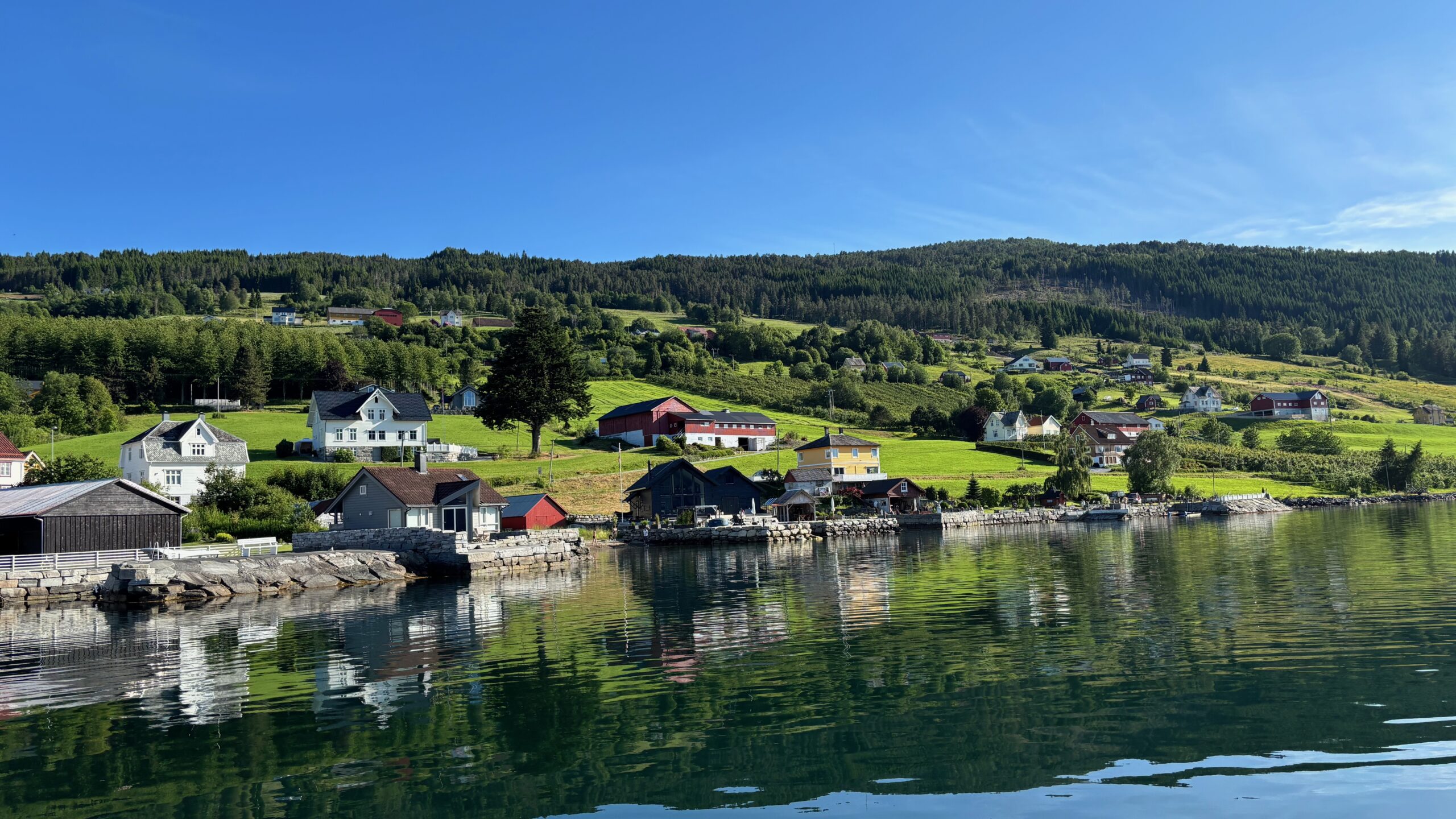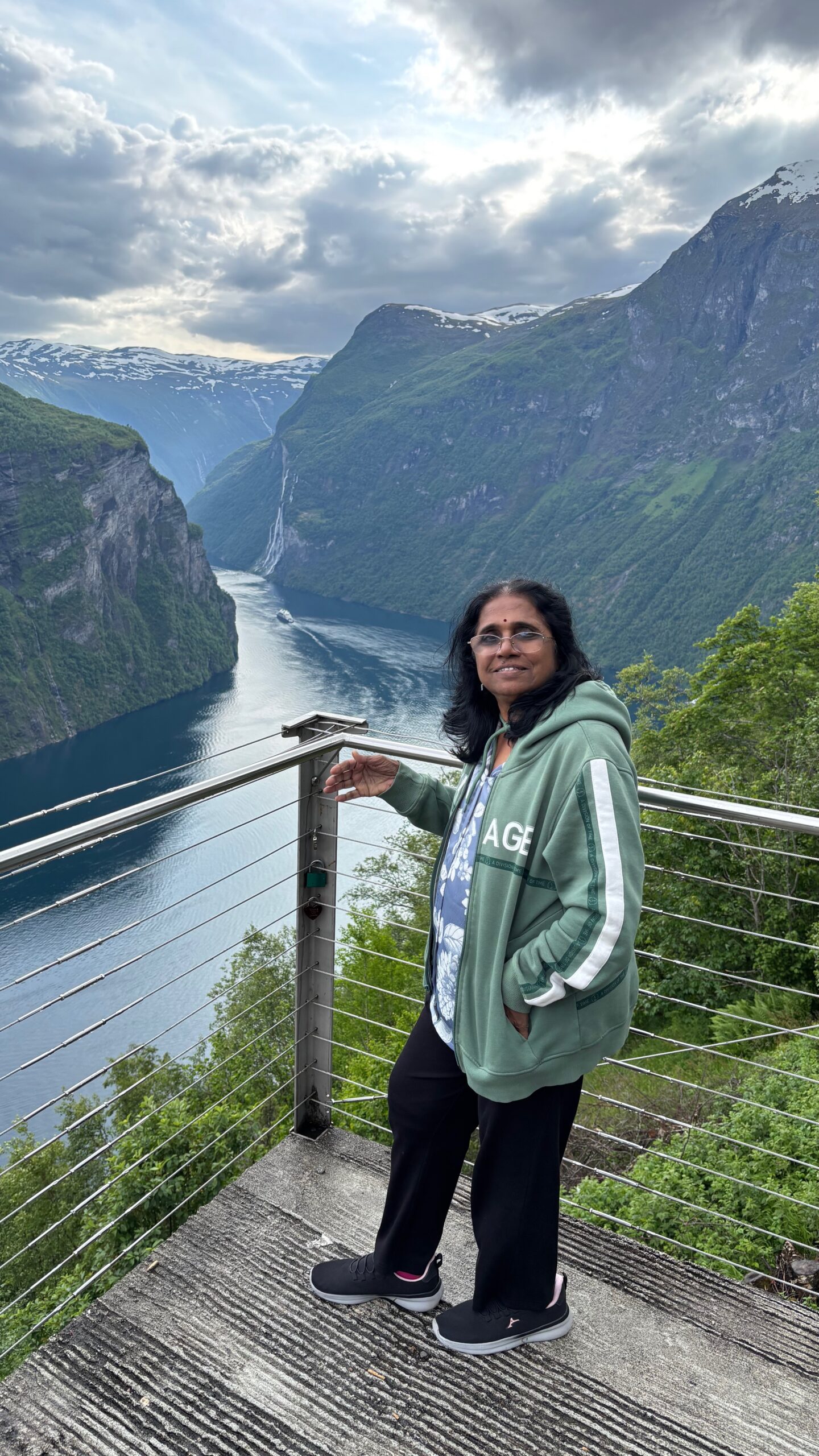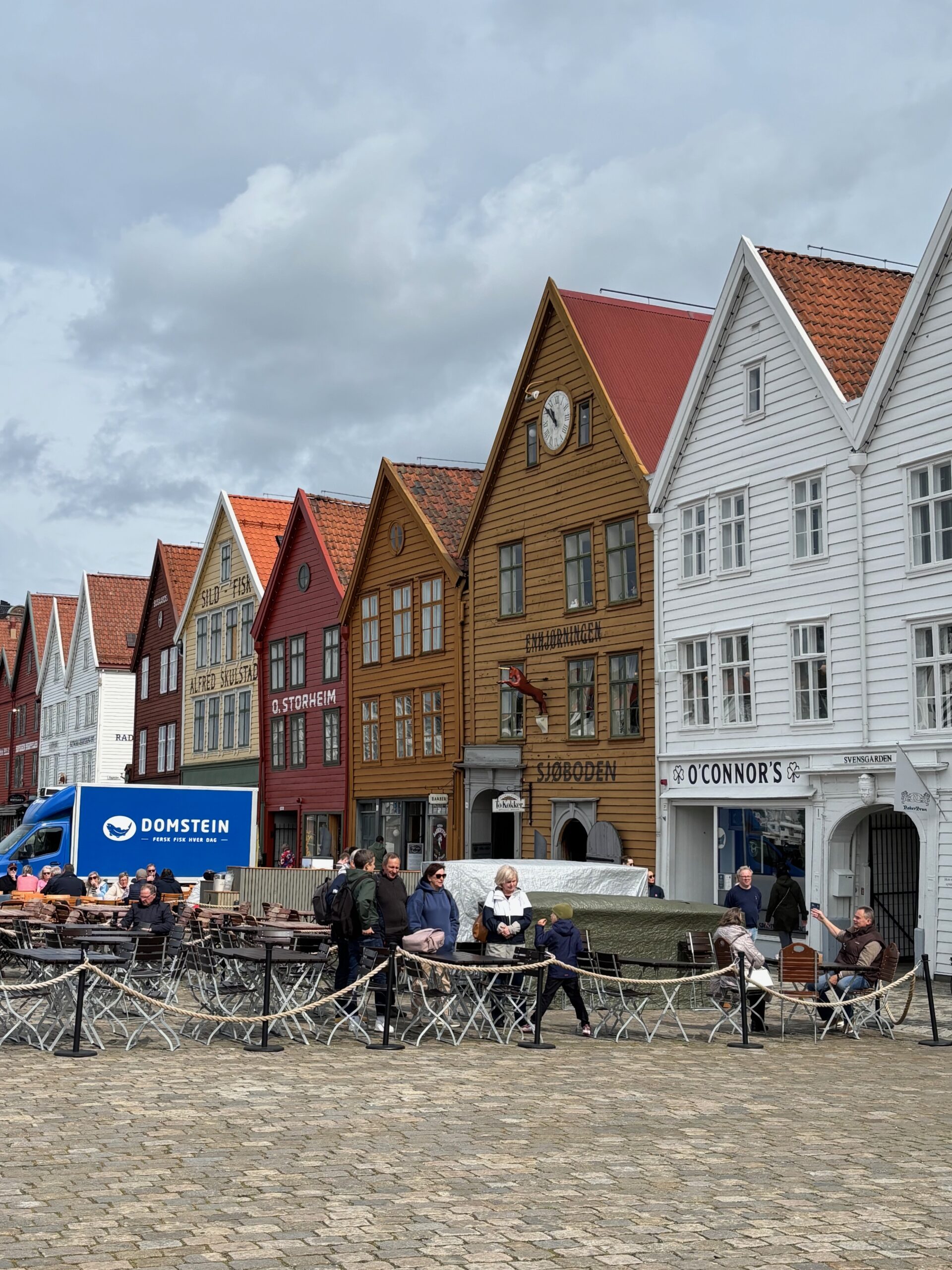 Next, we drove west to Bergen, the city of seven mountains, where colorful harbors and sea-salt air framed our days. From there, we moved to the tranquil valley of Flåm, nestled between steep cliffs and cascading waterfalls. Our countryside stay felt like a dream. A cruise through the Nærøyfjord, one of Norway’s most dramatic and narrow fjords, left us floating through a landscape carved by time. At the Stegastein Viewpoint, we stood high above the fjord, suspended in silence, surrounded by clouds and space.