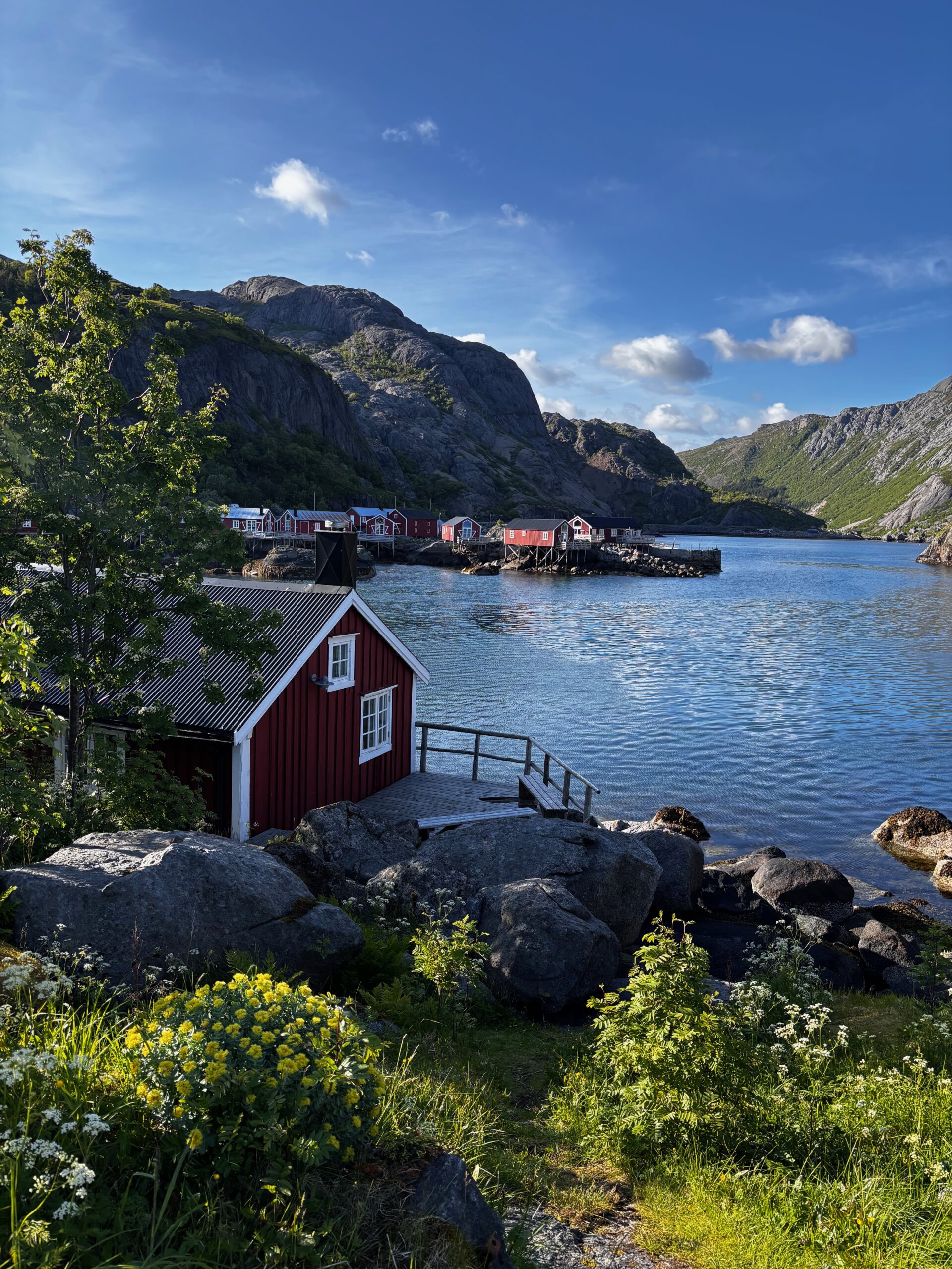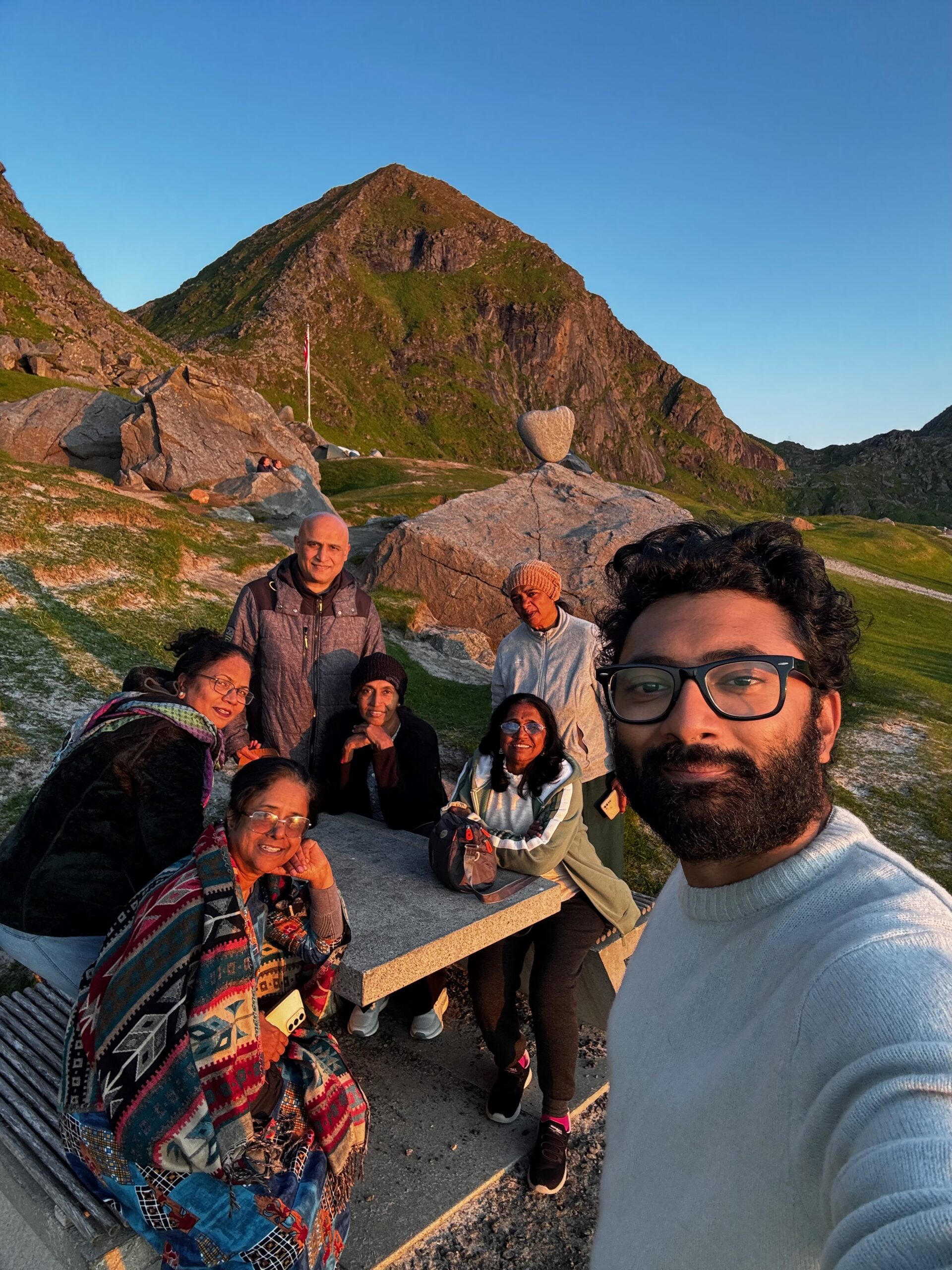 Then came the Lofoten Islands—rugged, remote, and unforgettable. We spent three nights there, wrapped in golden light under the Midnight Sun. The experience was otherworldly, but what truly took it over the top was our outdoor Jacuzzi, perched on the edge of silence, facing dramatic peaks and glistening water. Soaking under the midnight sky, laughing and marveling at how far we’d come—it was unreal, magical, and an absolute thrill.