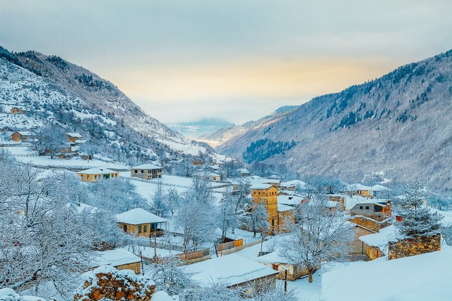 Ushguli is a remote village in the Svaneti region of Georgia, located high in the Caucasus Mountains.