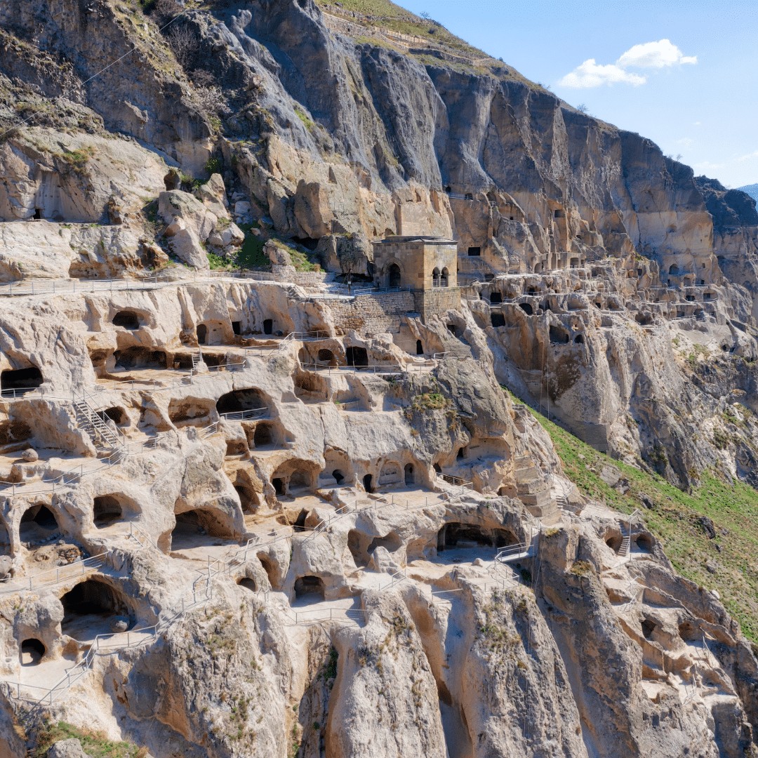 Vardzia is one of Georgia’s most remarkable and awe-inspiring historical sites, an ancient cave city carved into the rugged cliffs of the Erusheti Mountain in the south of the country, near the border with Turkey. Dating back to the 12th century, it was once a bustling fortress and monastic complex, and today it stands as a testament to the ingenuity and spiritual devotion of its creators. Vardzia is both a place of historical significance and breathtaking natural beauty, making it a must-visit destination in Georgia.
