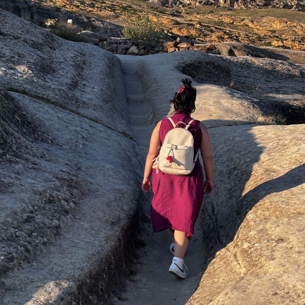 ‘Uplistsikhe’ translates to ‘Lord’s Fortress’. The site consists of a network of caves, tunnels, and rooms, all hewn from the soft sandstone cliffs. The caves are interconnected by narrow passageways, and many of them still retain the outlines of their original structures and are testament to the people who lived here thousands of years ago