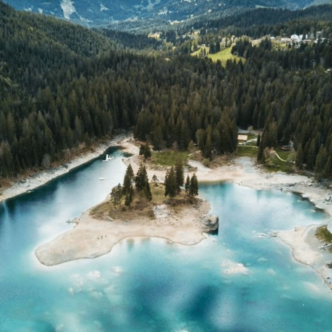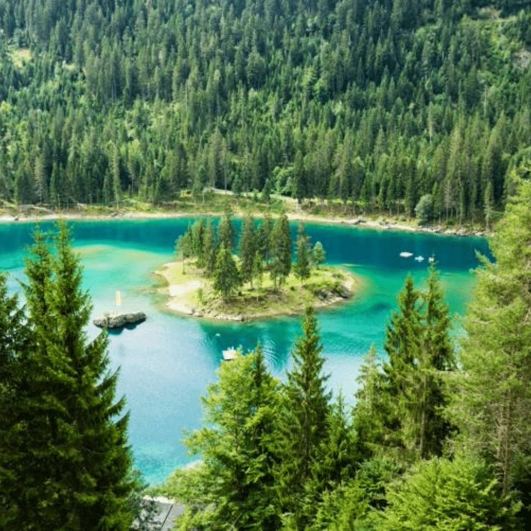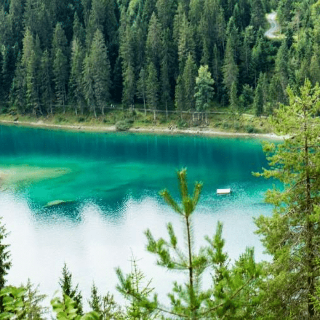 Situated 1,519 metres above sea level, it’s a beautiful alpine lake with gleaming emerald water, surrounded by spruce trees.