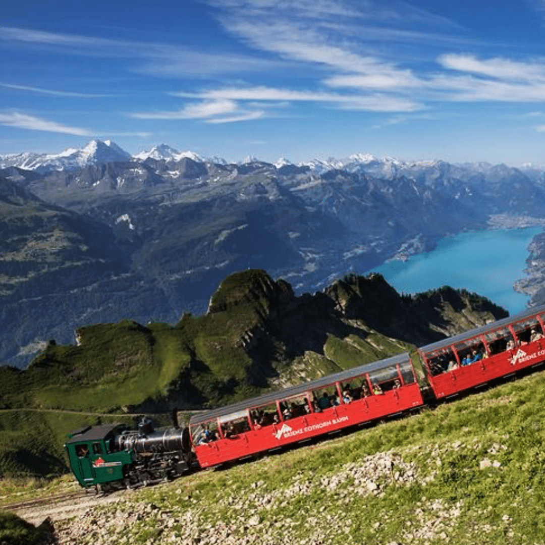 A steam experience not to be missed. Best view on the turquoise Lake Brienz and of more than 600 peaks.