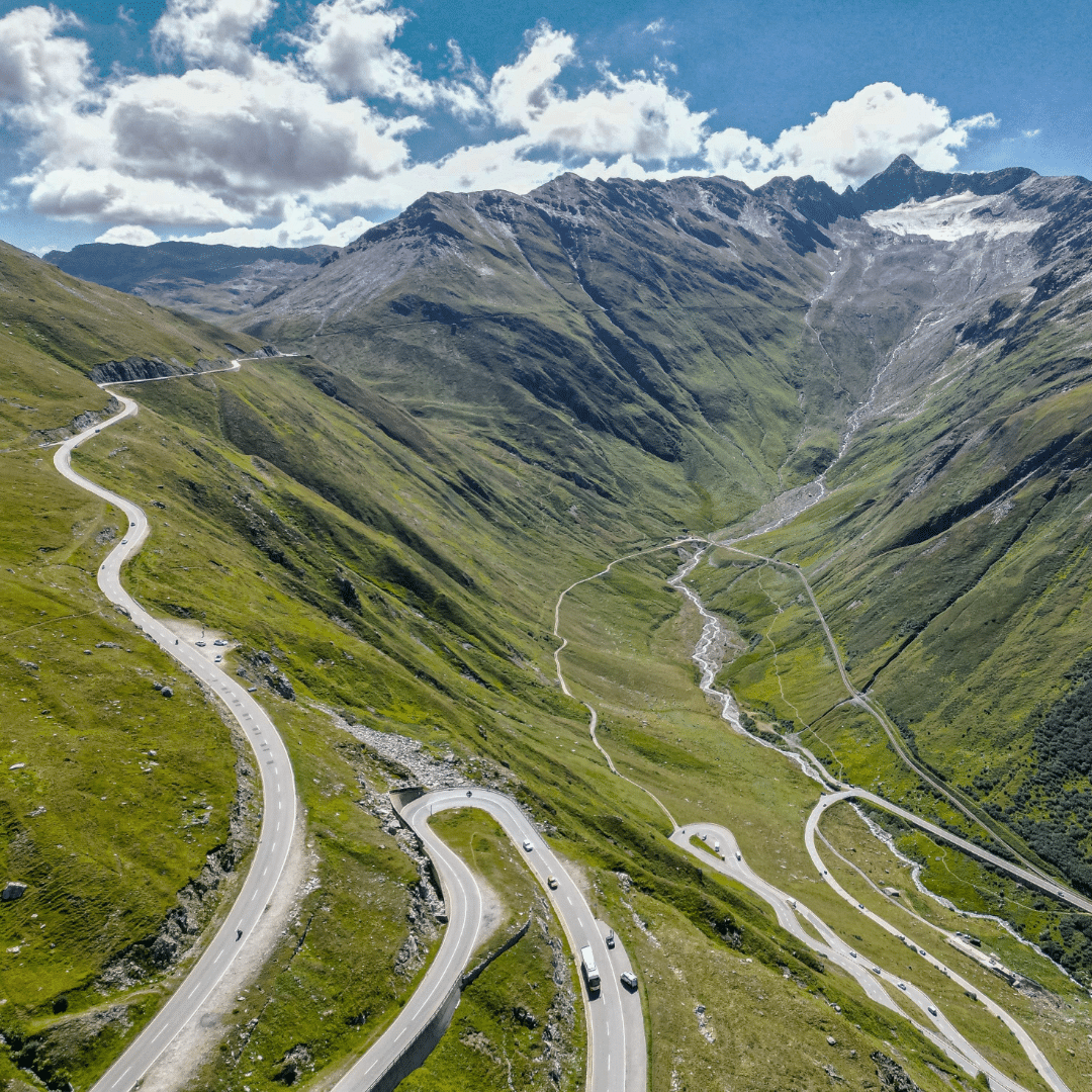 The road is well maintained and reaches a maximum gradient of 12 percent. It twists and turns, traversing around some of the highest peaks in the range, and passing through ski resorts and mountain villages along the way.
