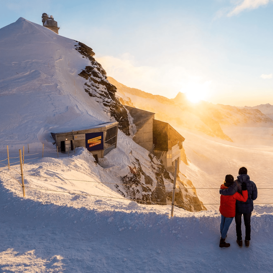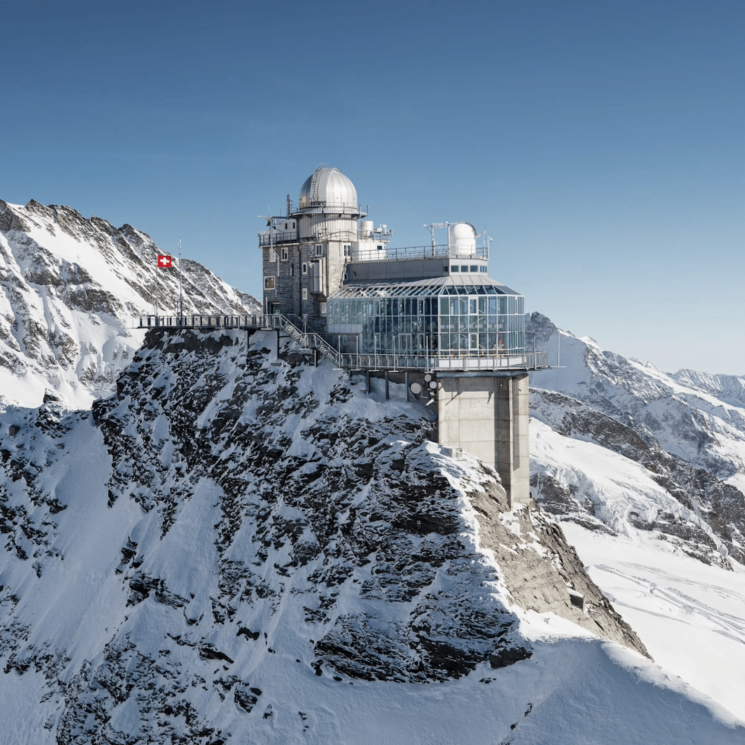 Icy air sweeps over your face, snow crunches underfoot, and the panorama almost takes your breath away: on one side the view of the Swiss Mittelland towards the Vosges, on the other the Aletsch Glacier, lined with four thousand metre peaks. Standing on the Jungfraujoch 3,454 metres above sea level, you can feel it with your first step: this is a different world. It’s one you have to experience.