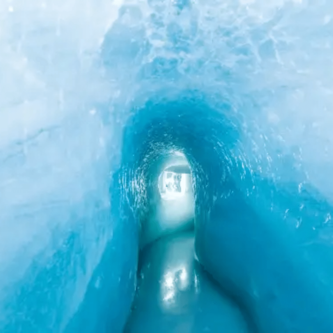 A secured hike taking you across crevasses and turqoise water of melting ice, to a pleasant surprise at the opposite side!