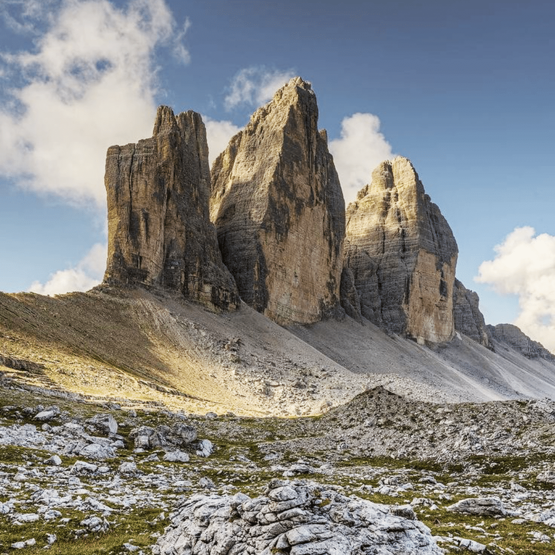 The Tre Cime Di Lavaredo (Three peaks of Lavaredo) are a bizarre and striking alpenstock belonging to the Sesto Dolomites, the most north-eastern mountain group of the Dolomites. Due to the special shape, these three pinnacles are world-famous and are considered to be the symbol of the Dolomites.