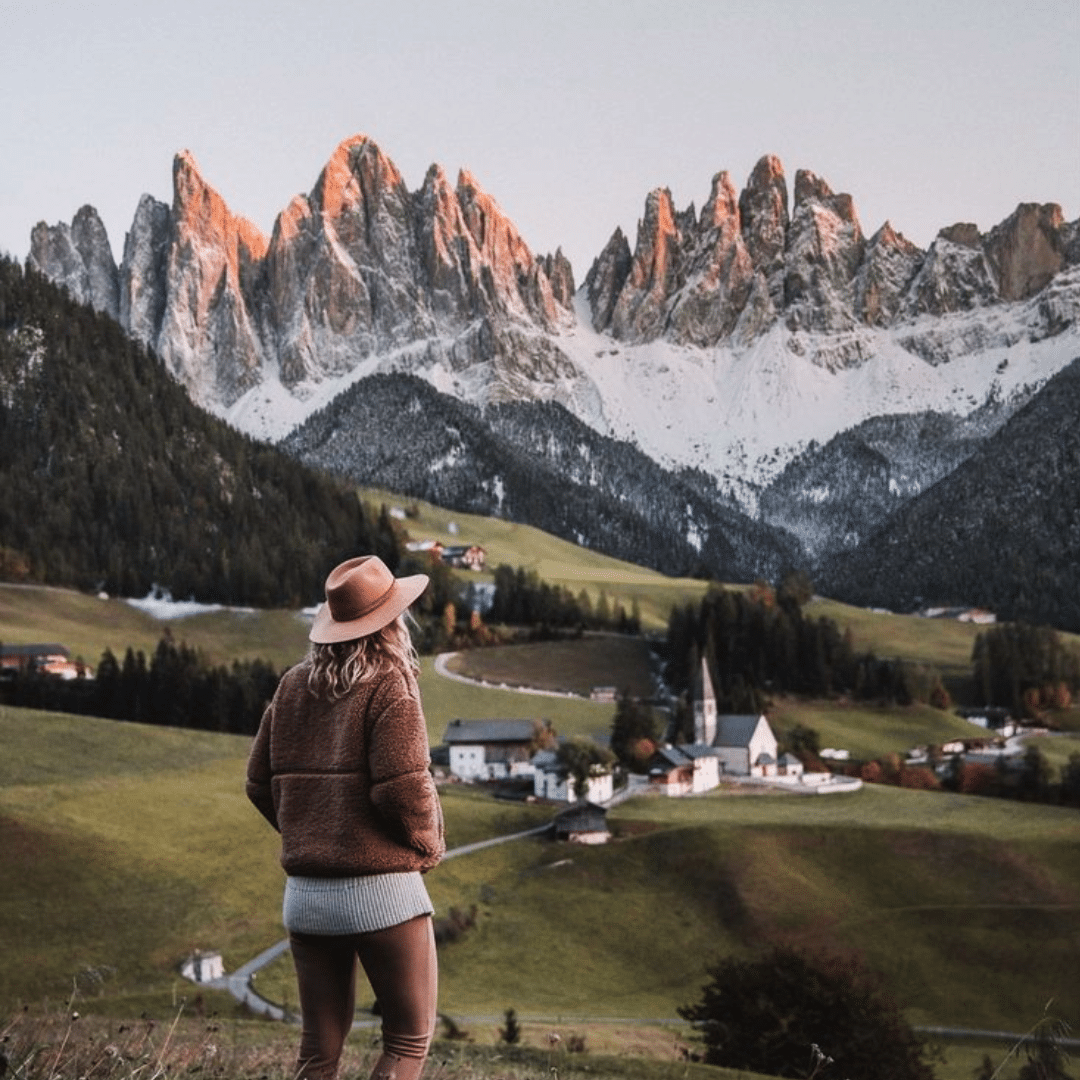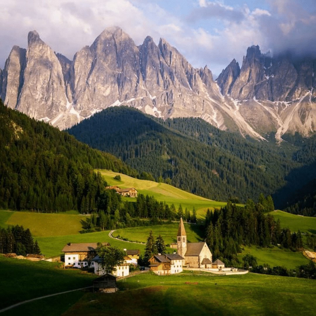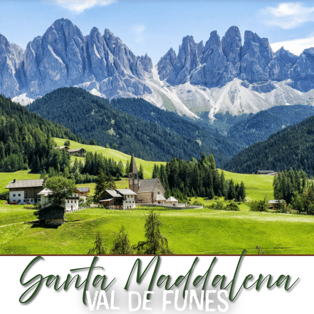 Santa Maddalena (St. Magdalena in German) is a village in Val di Funes (Villnösstal) in South Tyrol, Italy. This small mountain village is home to the historic Santa Maddalena Church, which is one of the most popular photo spots in the region. It’s also the start of an excellent panoramic hike.