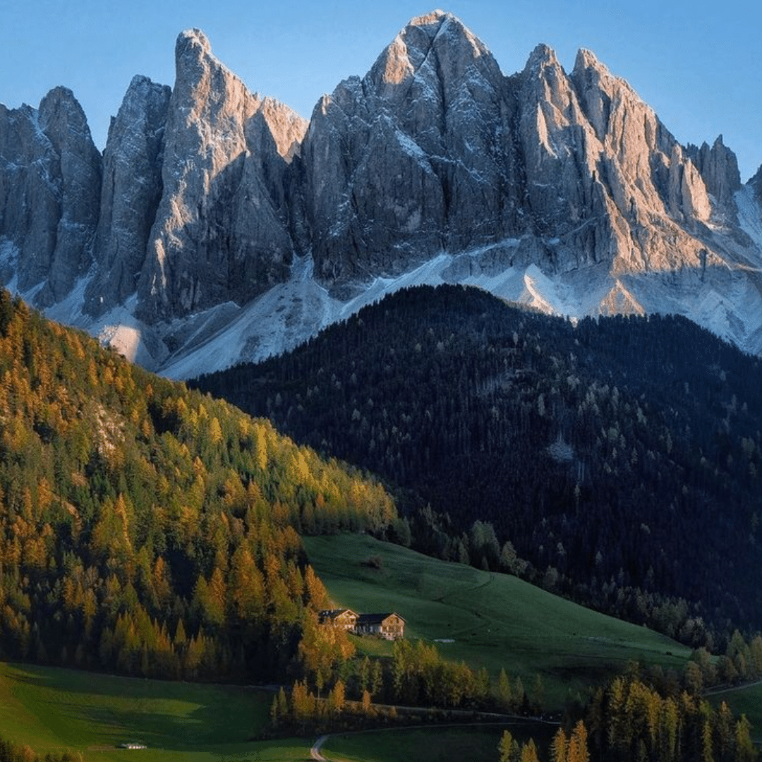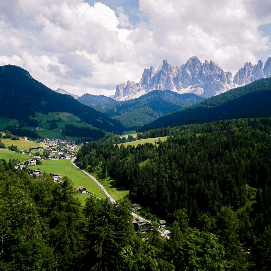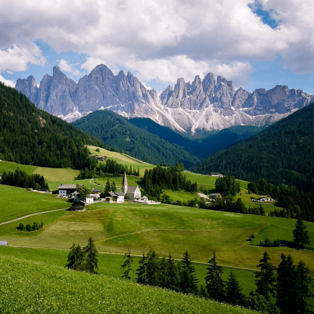 Santa Maddalena (St. Magdalena in German) is a village in Val di Funes (Villnösstal) in South Tyrol, Italy. This small mountain village is home to the historic Santa Maddalena Church, which is one of the most popular photo spots in the region. It’s also the start of an excellent panoramic hike.