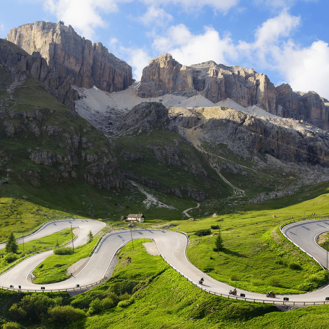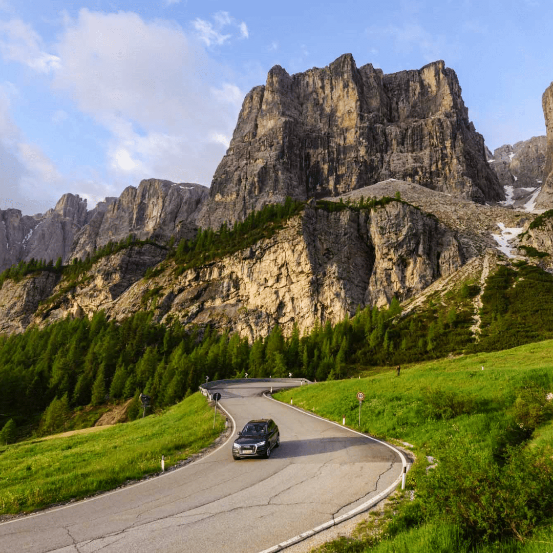 It crests two epic passes between Bolzano and Cortina d’Ampezzo as it winds its way through the UNESCO-listed Dolomites, known as the pale mountains.